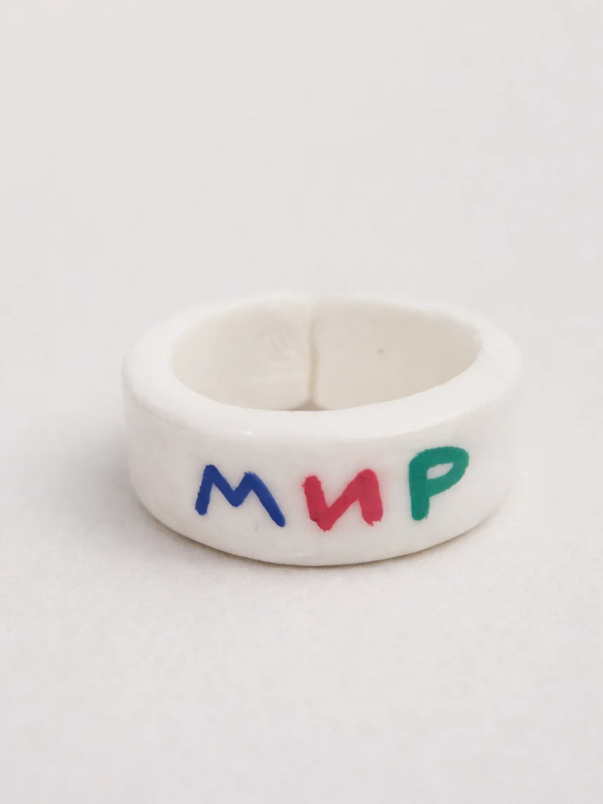Забавное кольцо ручной работы с надписью «Мир». Необычный подарок для себя или подруги!