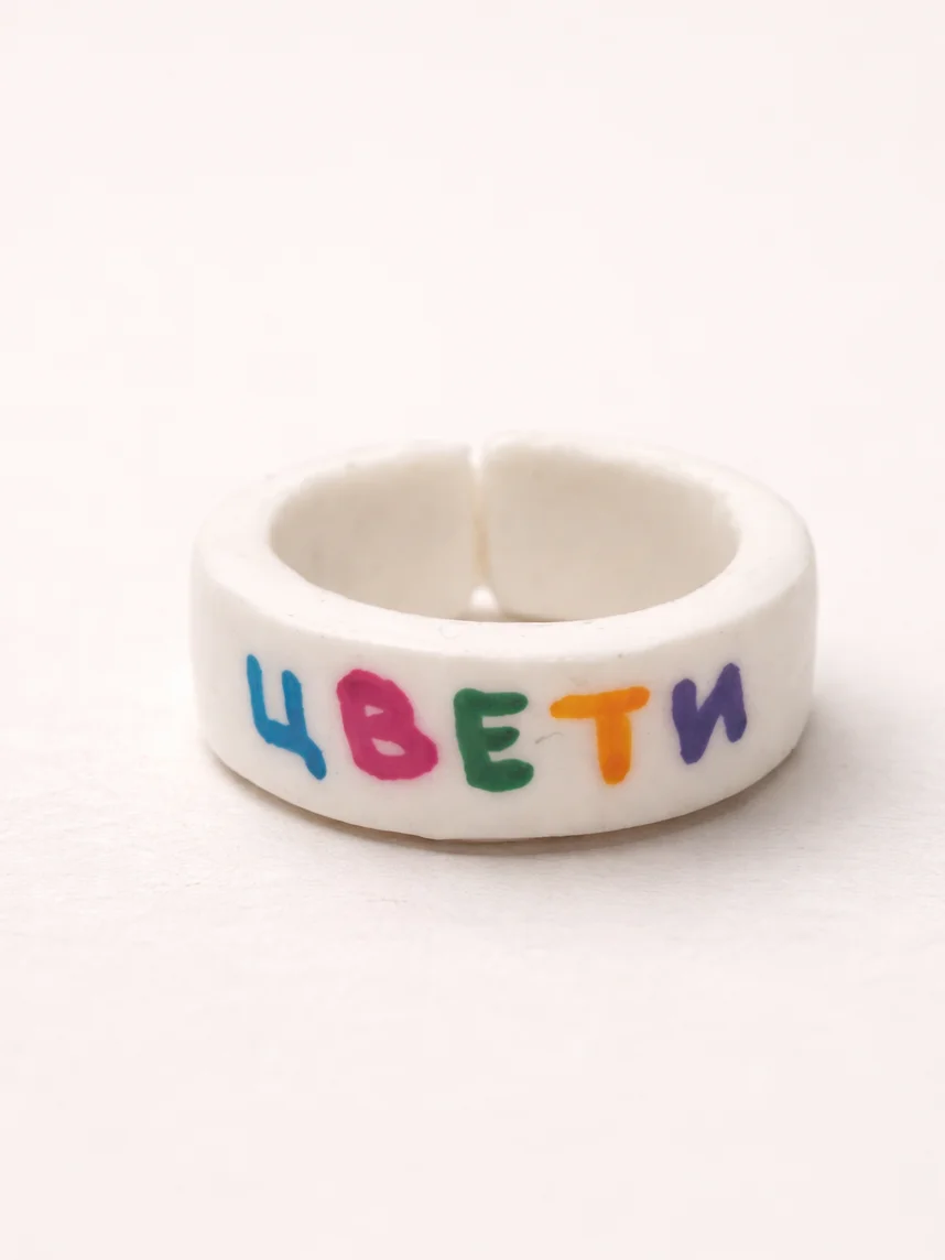 Забавное кольцо ручной работы с надписью «Цвети». Необычный подарок для себя или подруги!