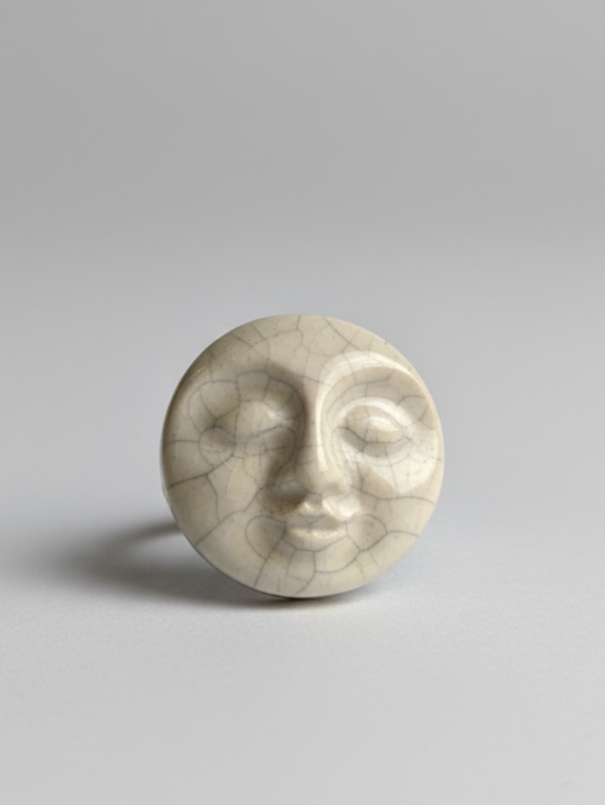 Кольцо ручной работы с эффектом кракелюр «Лицо», белое, керамика
