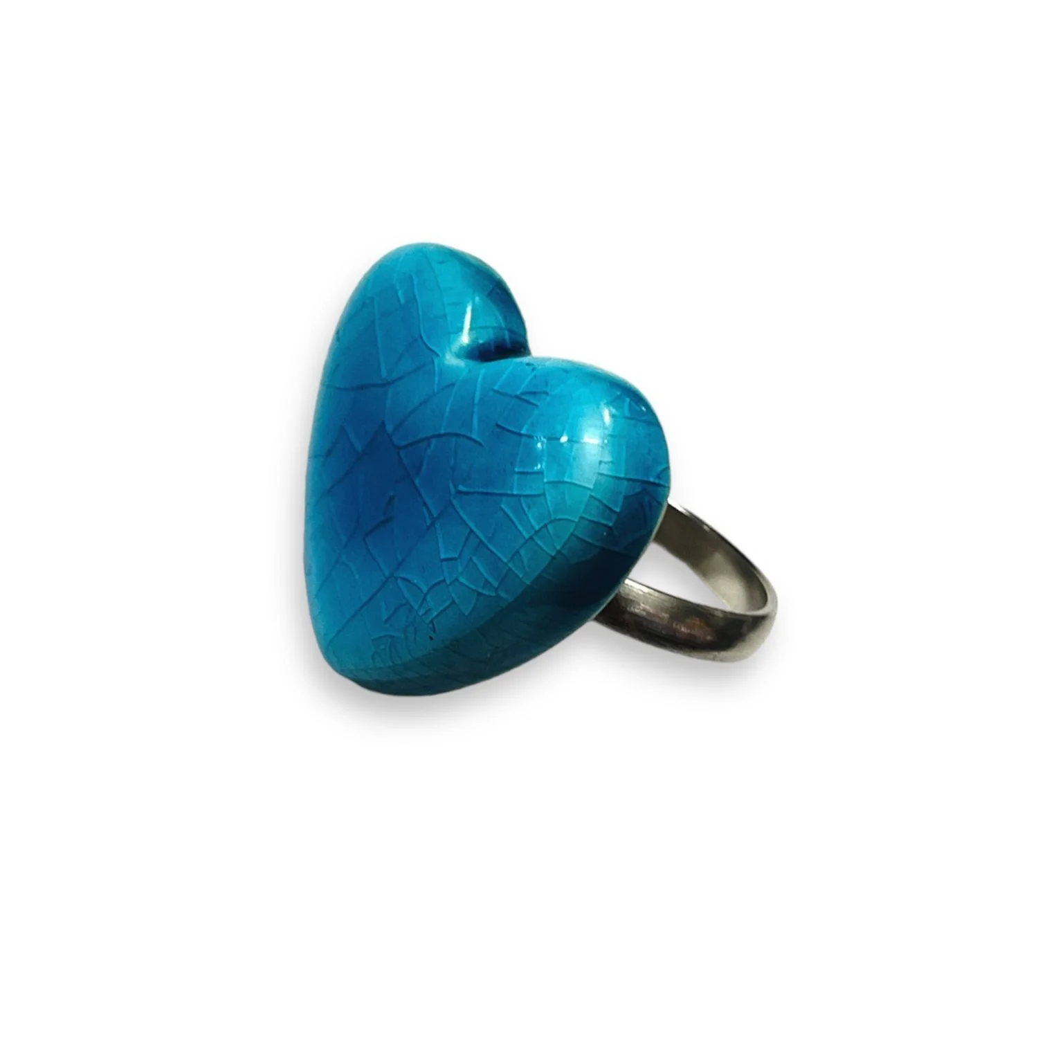Необычное керамическое кольцо в виде объемного сердечка ярко-синего цвета с эффектом состаренности- станет отличным подарком и не оставят без внимания любительницу украшений!