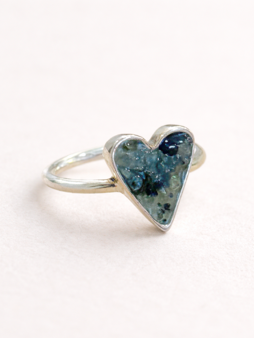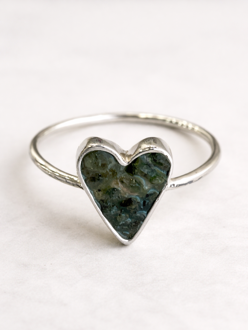 Кольцо ручной работы «Сердце» из нейзильбера и крошки турмалина бренда ANKAS jewelry.
