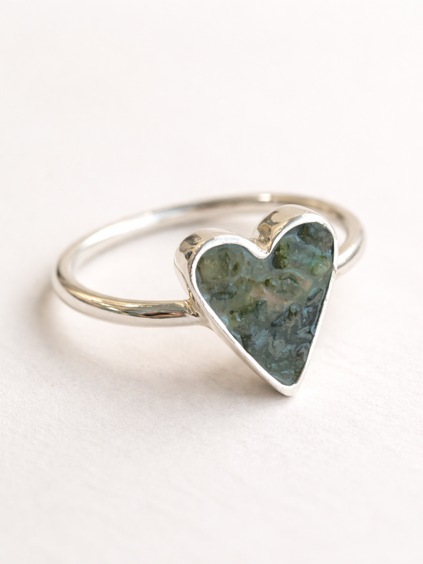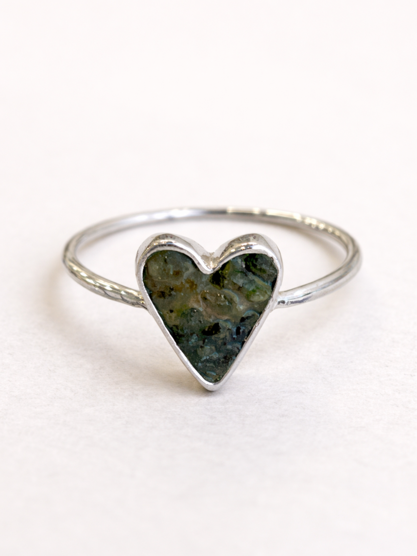 Кольцо ручной работы «Сердце» из нейзильбера  и крошки турмалина бренда ANKAS jewelry.