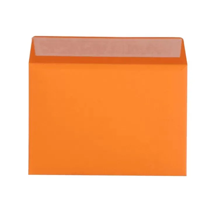 Цвет: оранжевый. Клеевой клапан с отрывной лентой расположен по длинной стороне конверта.