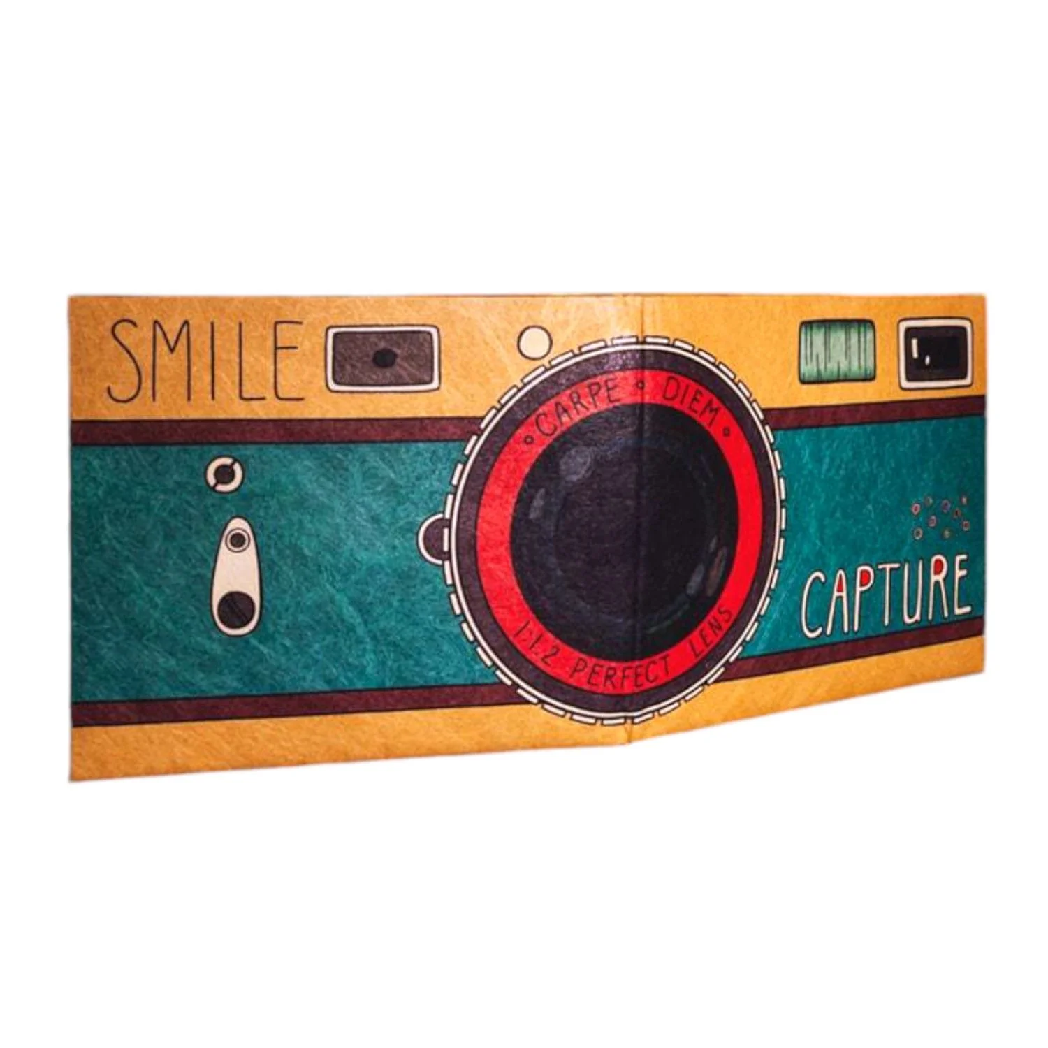 Этот фотоаппарат не заснимет жизнь, но отлично покажет себя в важные моменты. Он сбережёт ваши купюры и карточки, а ещё сможет радовать тёплым полароидным снимком, который спрячется в круглом отверстии. Иллюстрация напоминает ранний лейбл популярной соцсети – не зря этот кошелек полюбили блогеры со всего мира. Воплотить нашу идею в принт смогла художница Елена Papermoon.