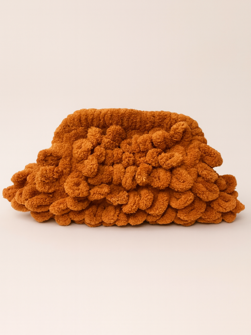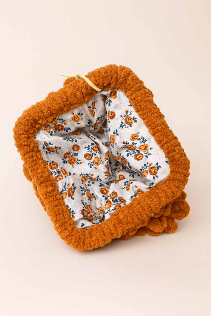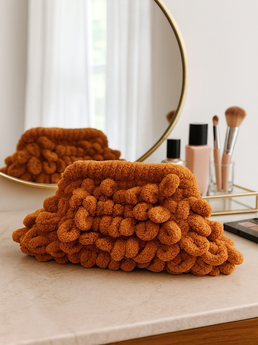Милая вязаная плюшевая косметичка модели от бренда svyazochka.