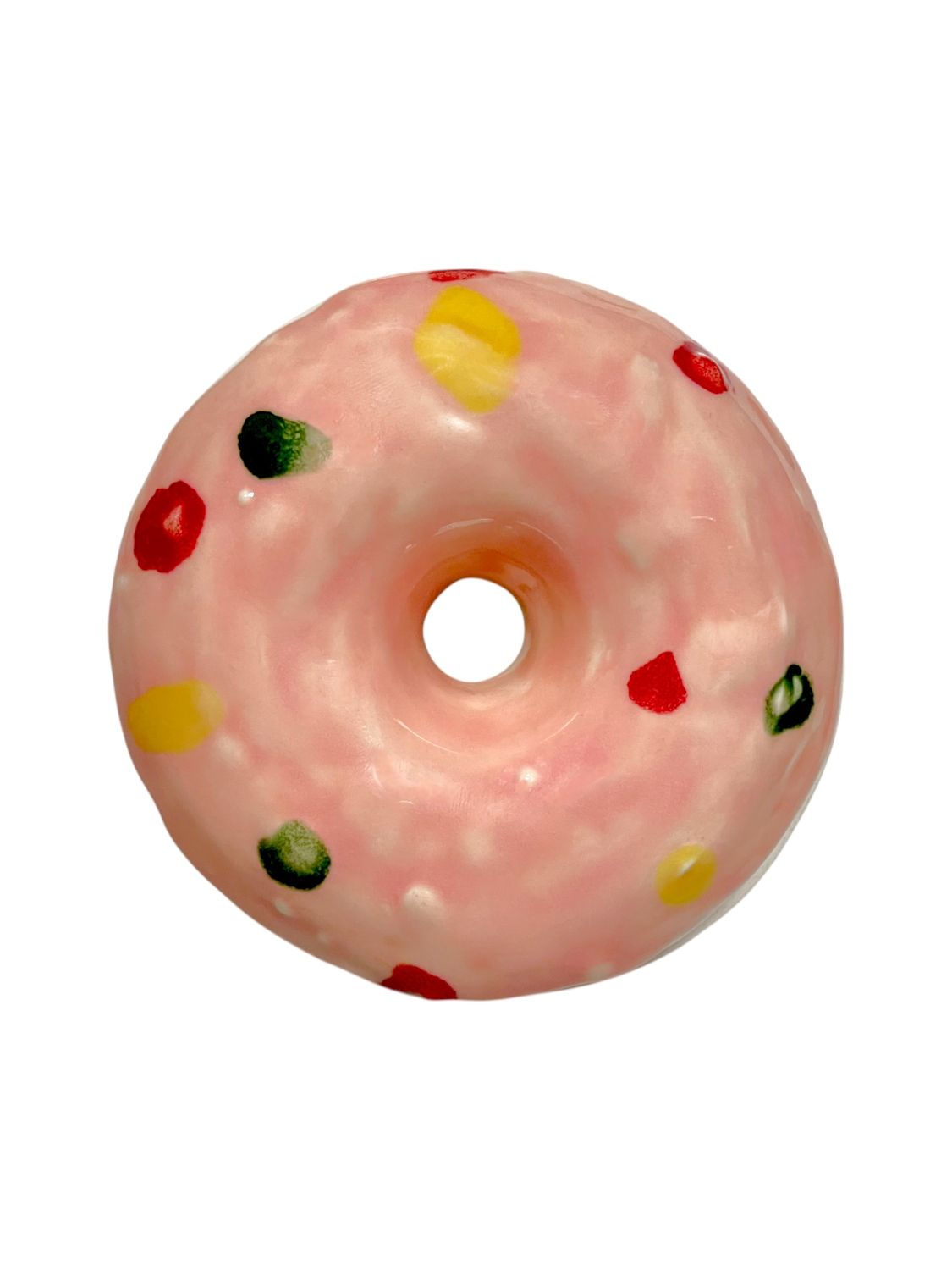 Круглая шкатулка ручной работы в виде пончика, розовая, керамика, 9 см