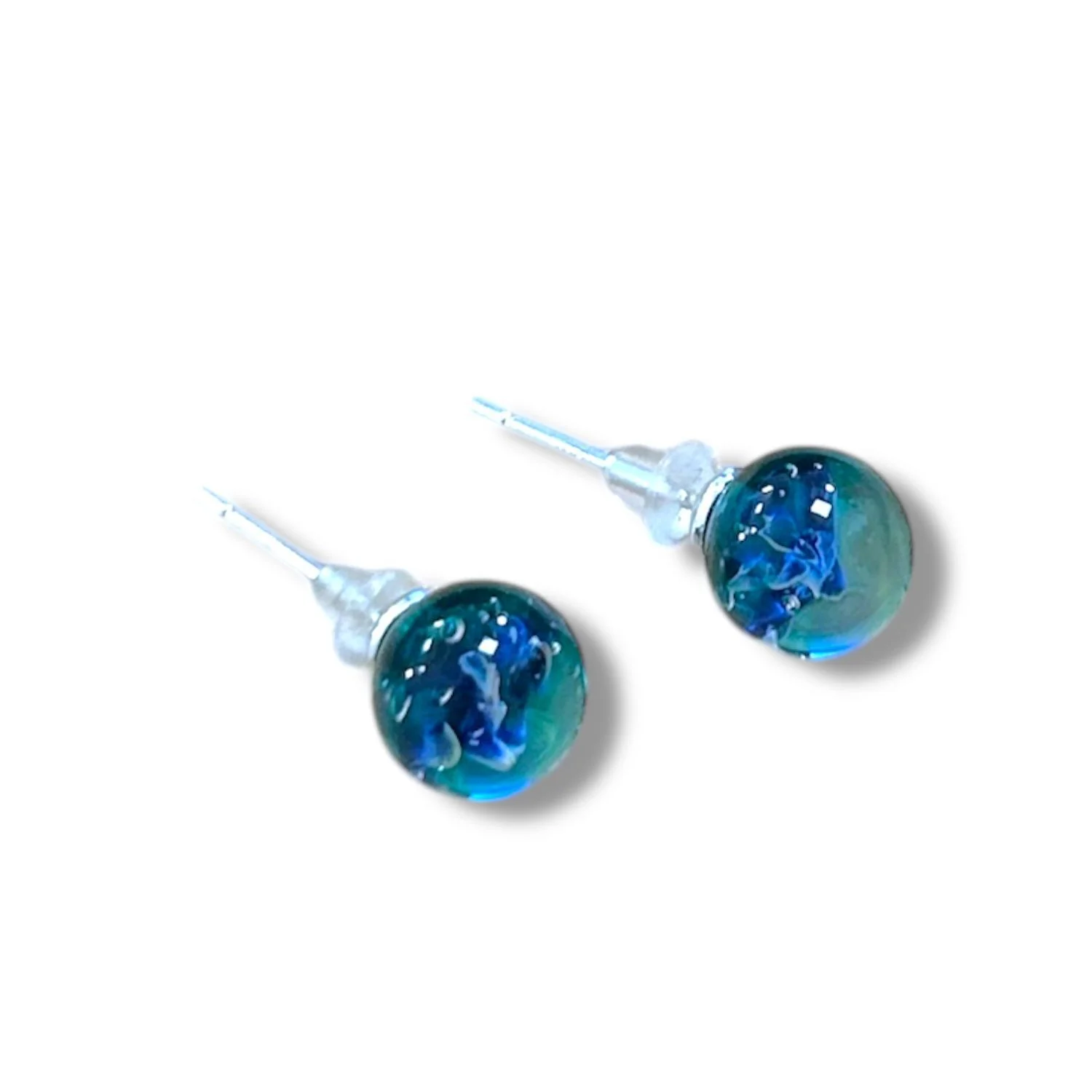 Необычные стеклянные серьги из серии «Далеко» ручной работы от бренда Kerko glass.