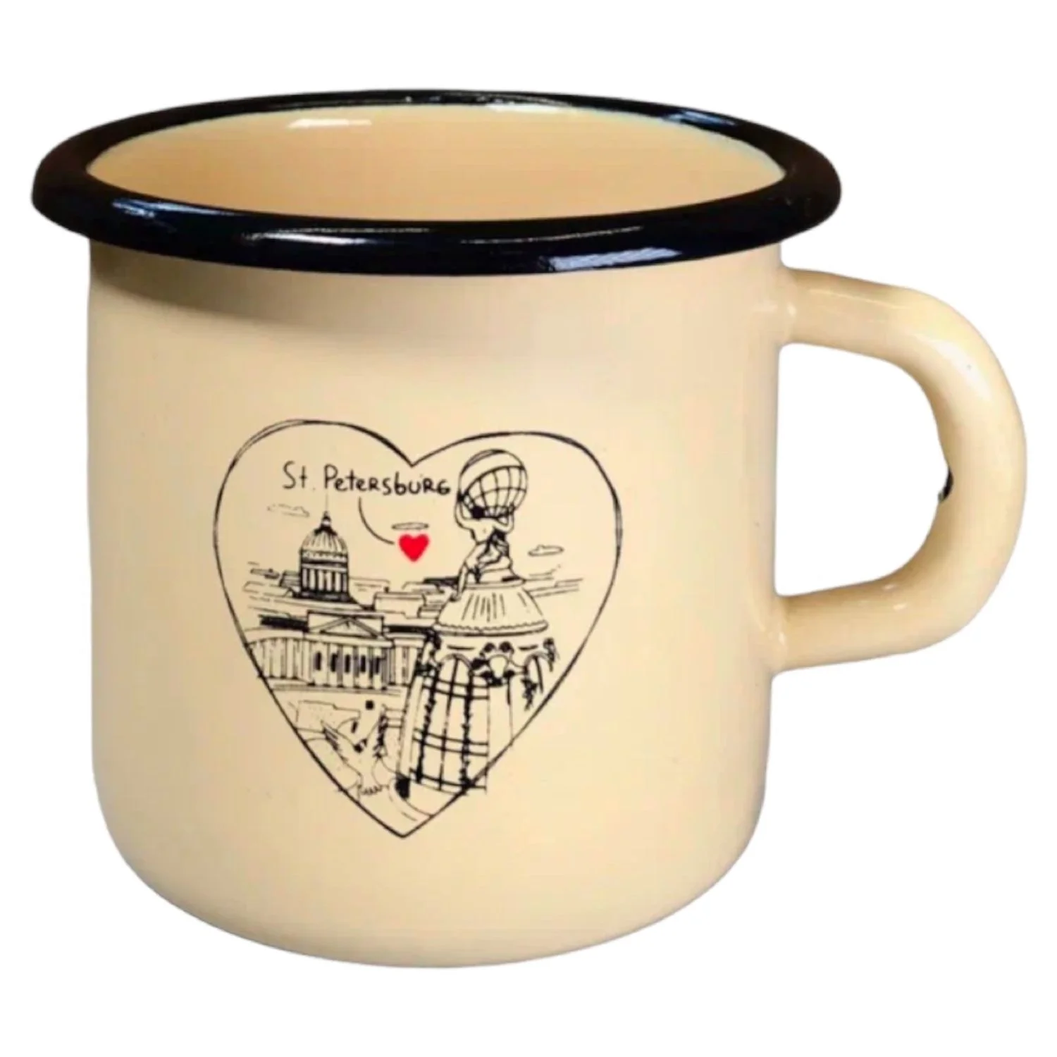 Кружка эмалированная «Дом Зингера» от бренда Подписные изделия - отличный подарок, который будет напоминать вам о прекрасном городе ежедневно!