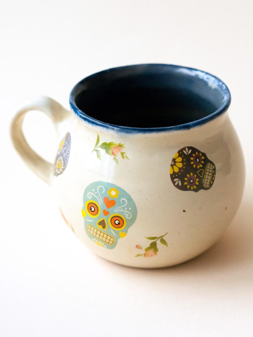 Кружка-котелок ручной работы на ножках «Череп», голубая, керамика, 350 мл