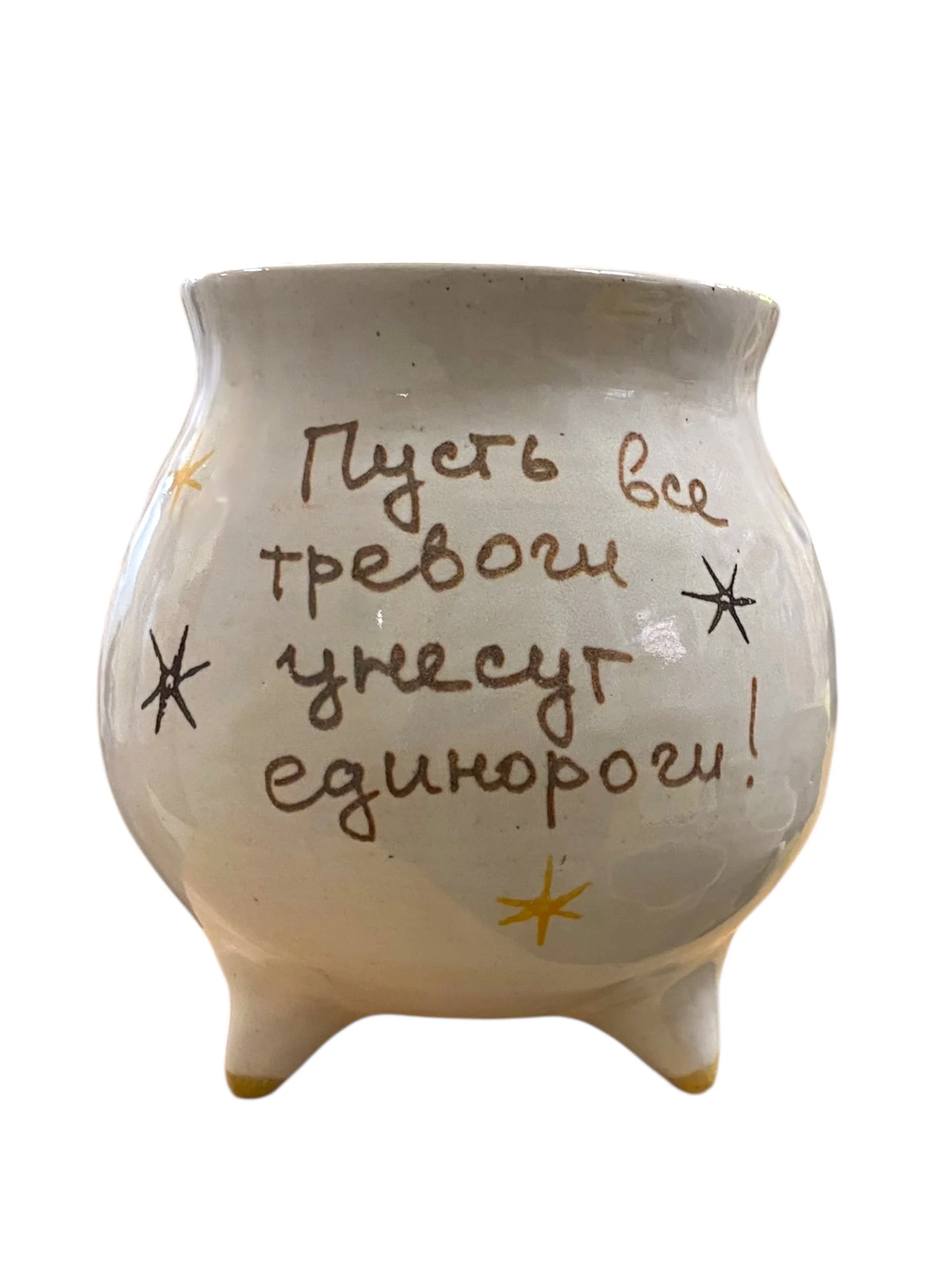 Кружка-котелок ручной работы Керумбия на ножках «Единорог», керамика, 350 мл