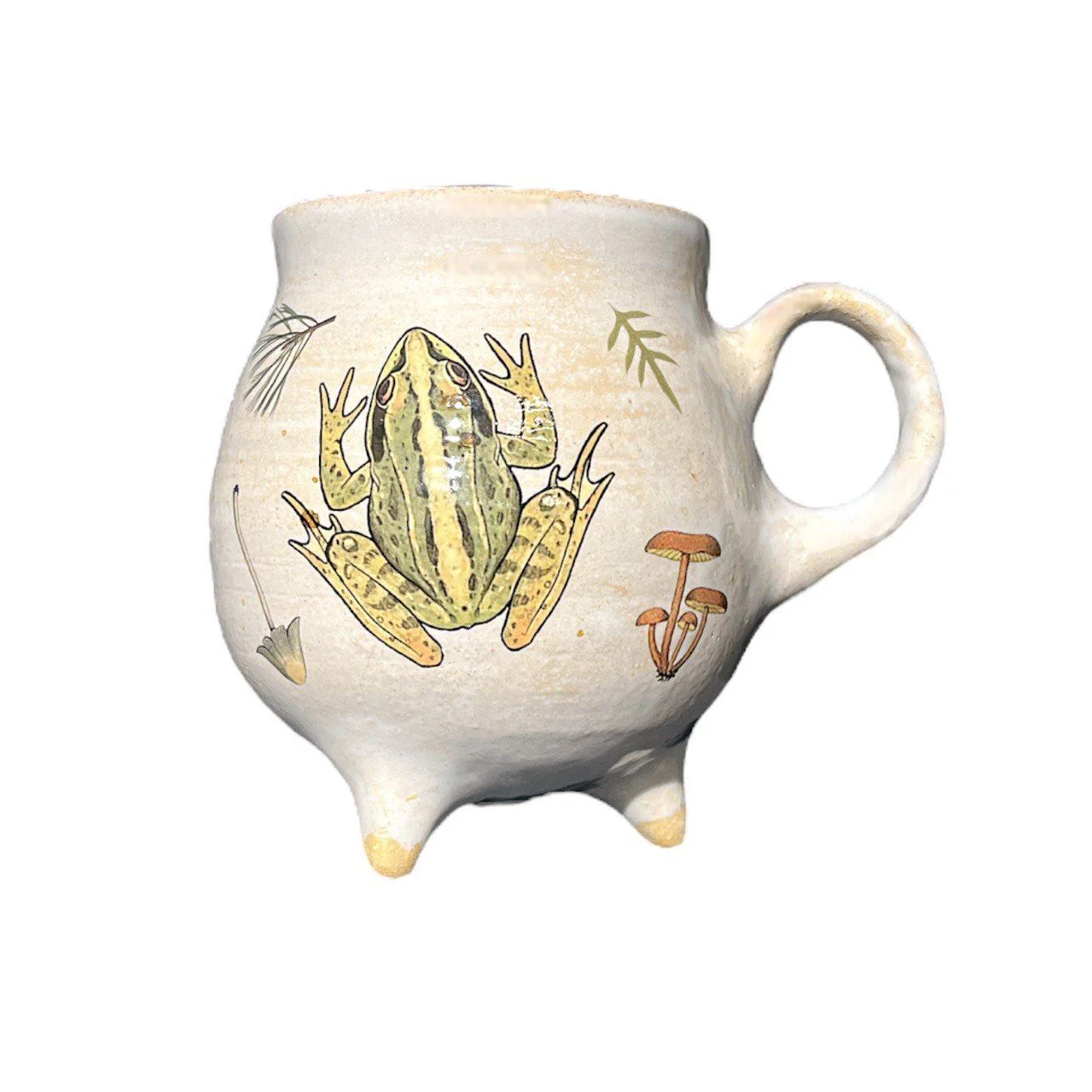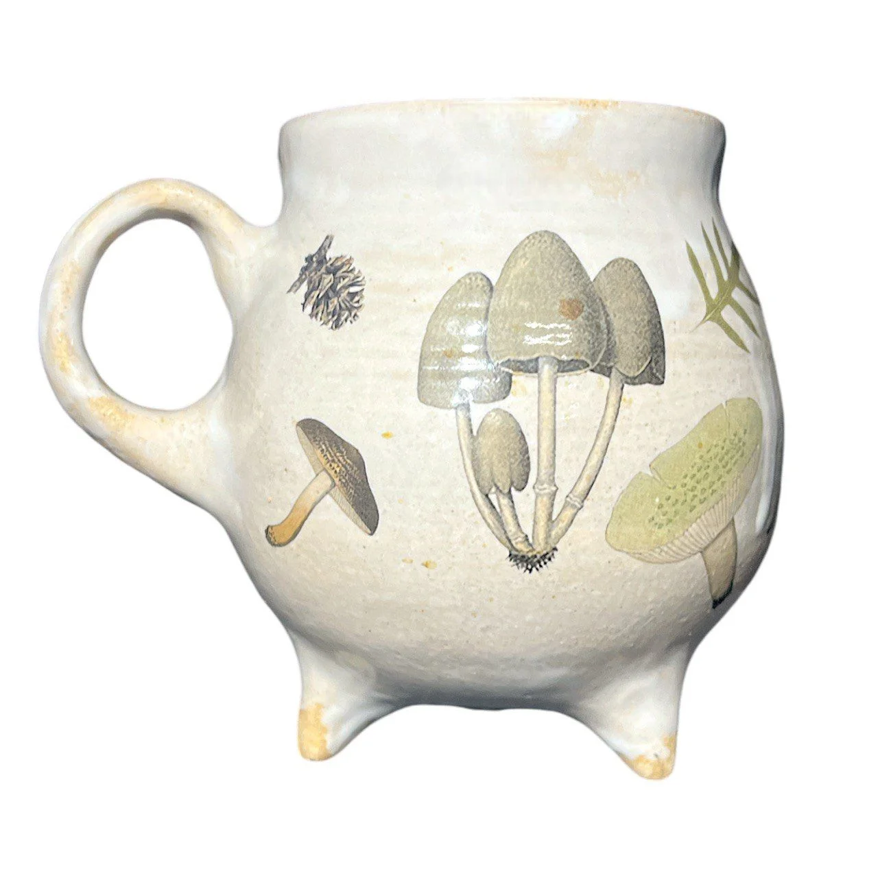 Кружка-котелок ручной работы Керумбия на ножках «Грибы», песочная, керамика, 350 мл