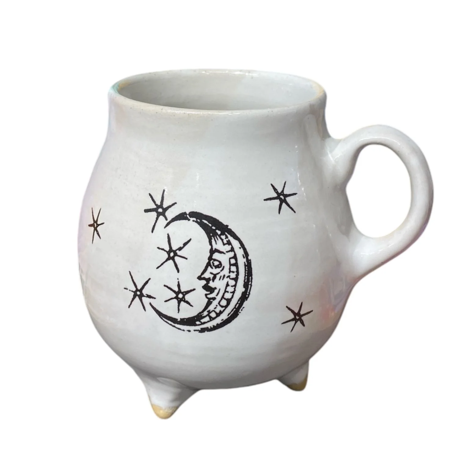 Кружка-котелок ручной работы Керумбия на ножках «Луна», белая, керамика, 350 мл