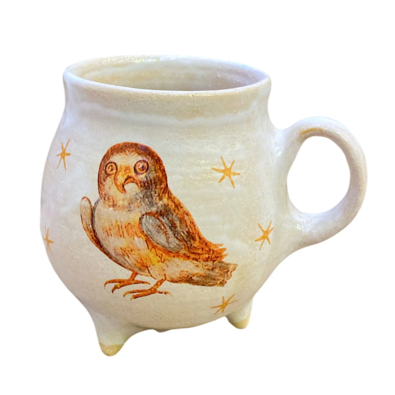 Кружка-котелок ручной работы Керумбия на ножках «Сова», белая, керамика, 350 мл