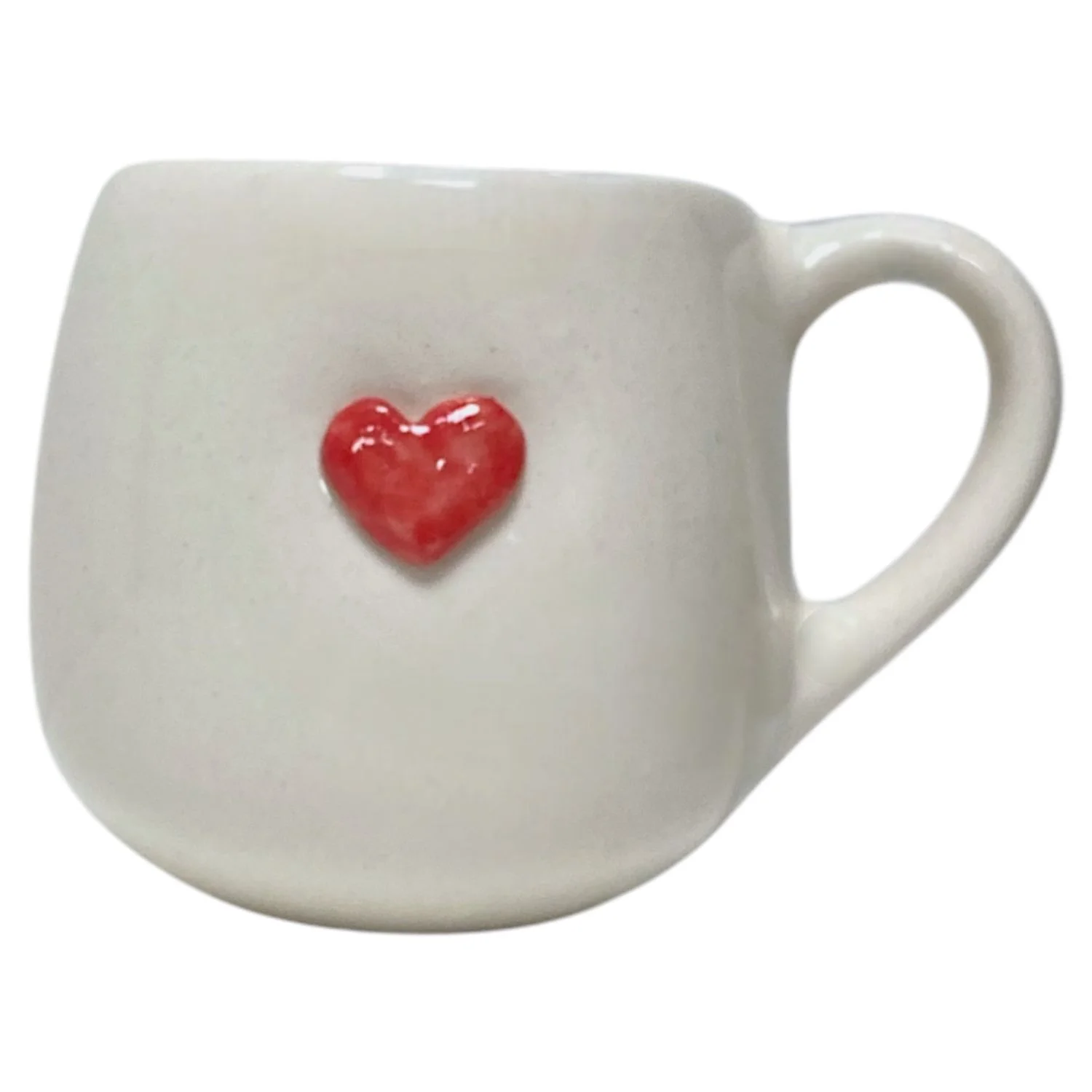 Кружка ручной работы Катя Вебер с красным сердцем, белая, полуфарфор, 350 мл, круглая