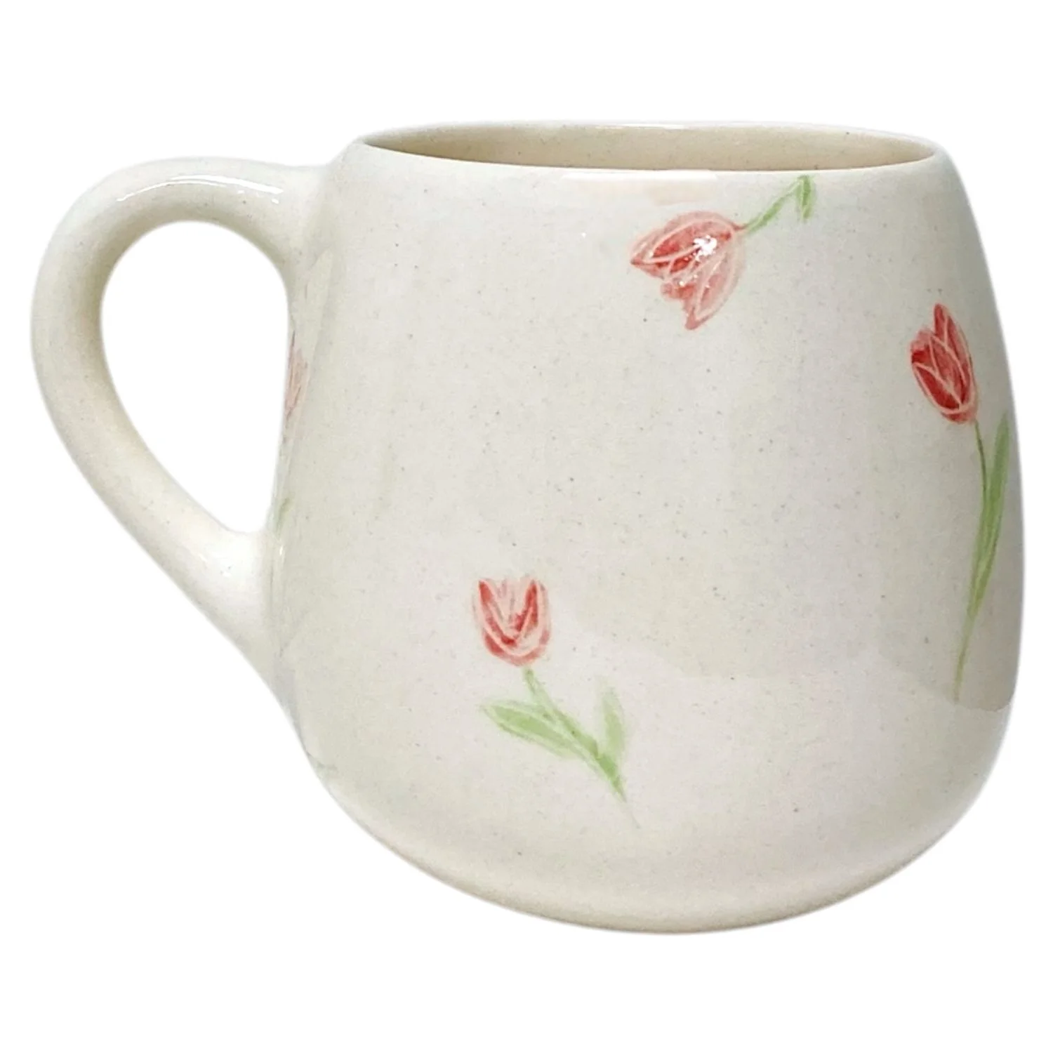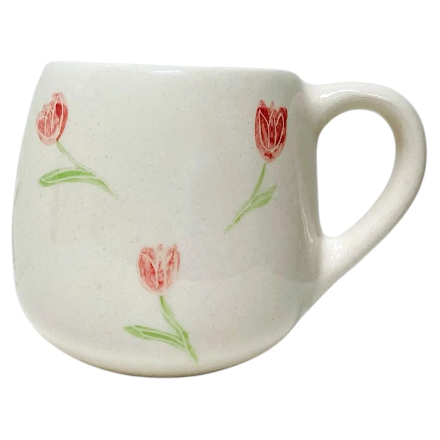 Кружка ручной работы Катя Вебер с тюльпанами, белая, полуфарфор, 350 мл, круглая