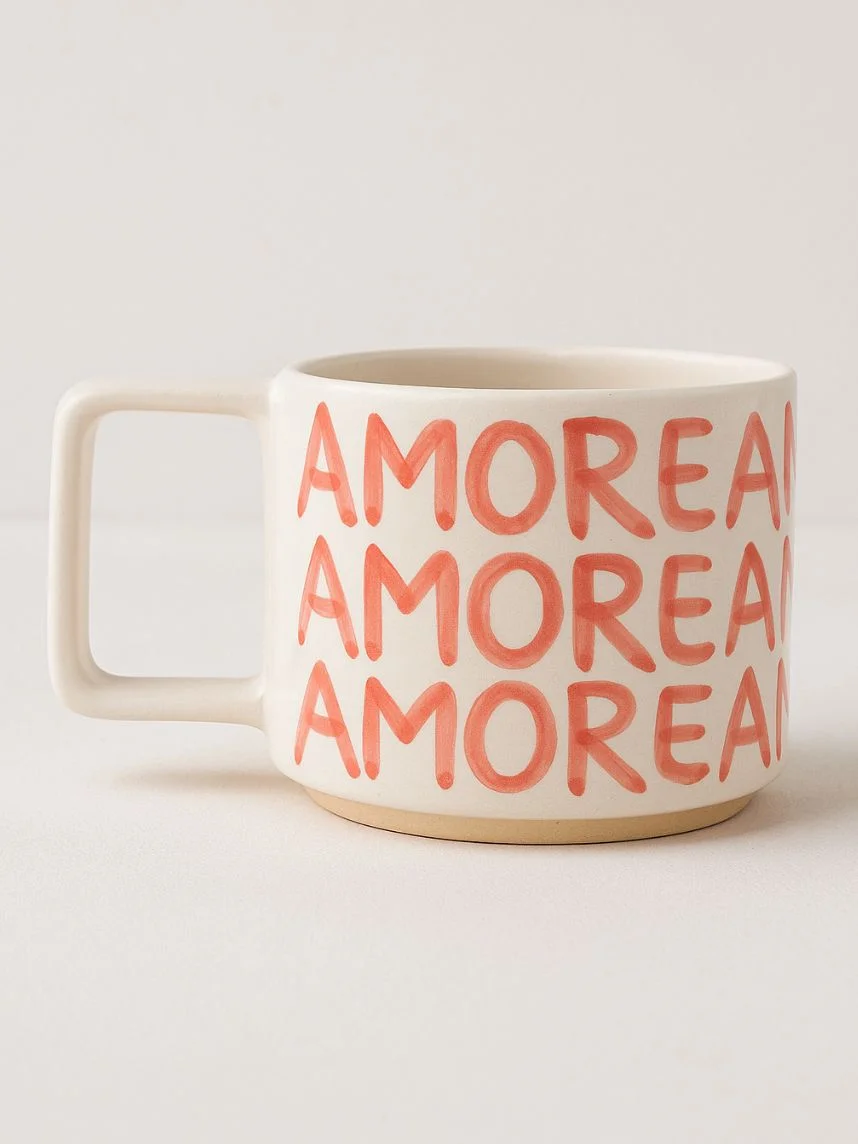 Кружка ручной работы РУКИ В ГЛИНЕ «Amore», белая, керамика, 350 мл