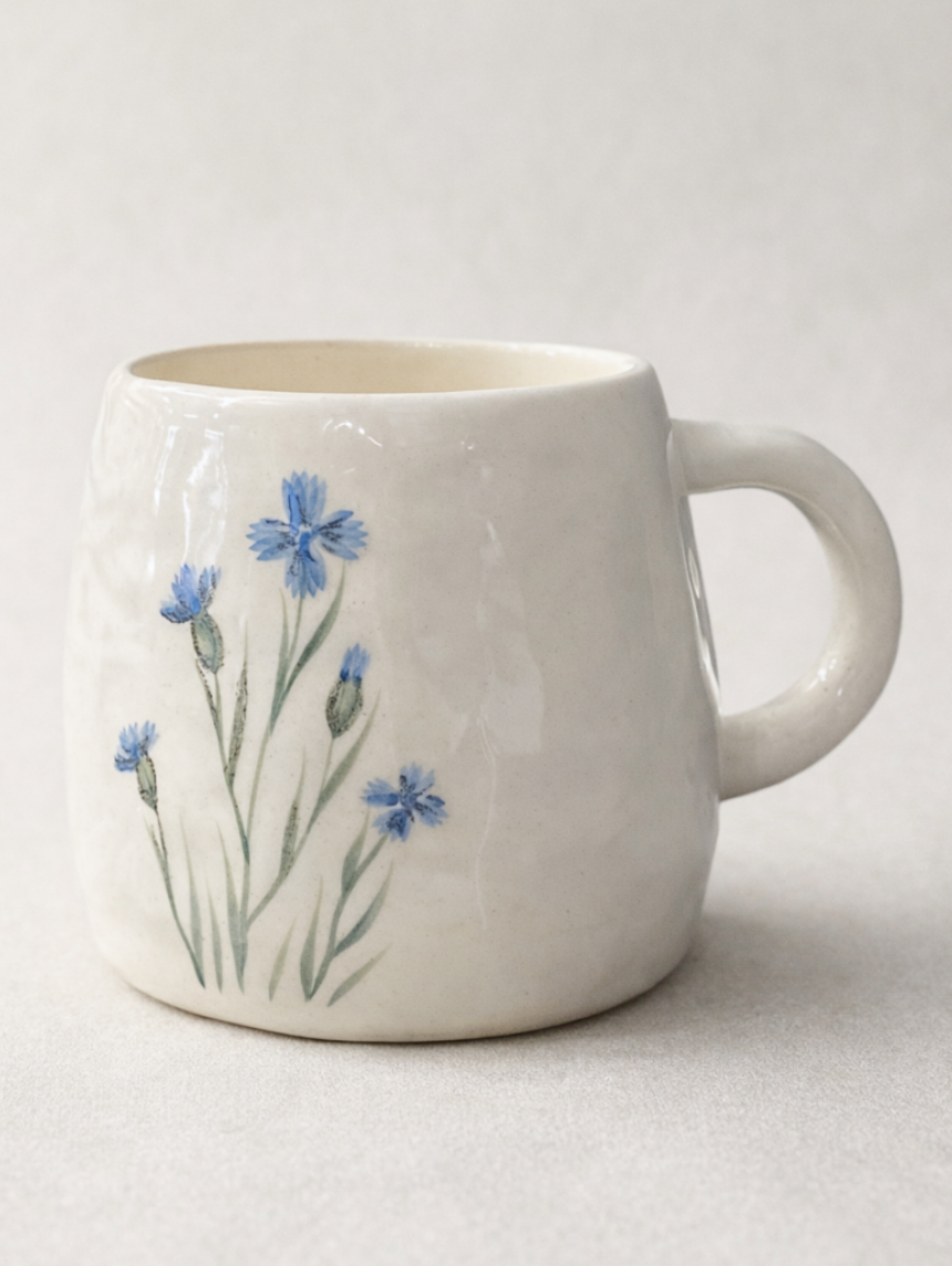 Кружка ручной работы Верба керамика бочонок «Васильки», керамика, 300 мл