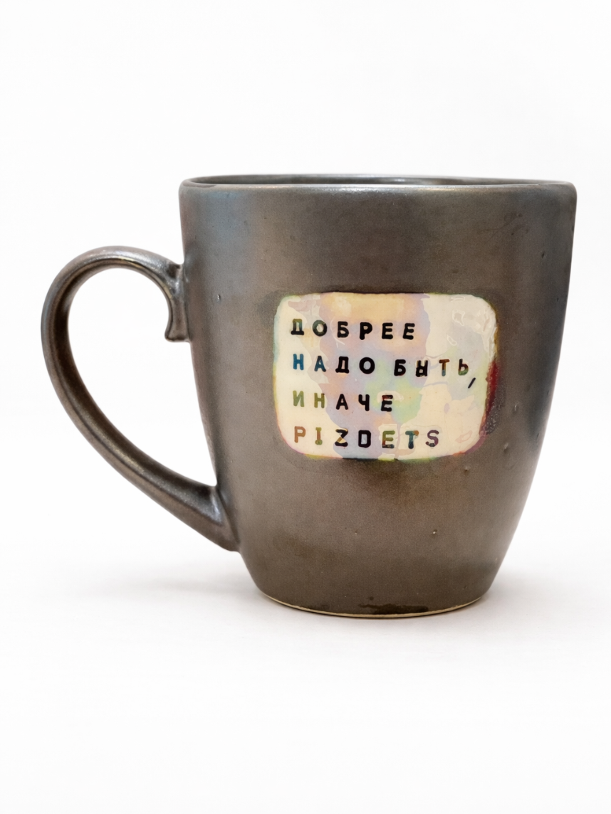 Кружка NF ceramics с дерзкой и одновременно жизнеутверждающей надписью «Добрее надо быть, иначе p***etz».