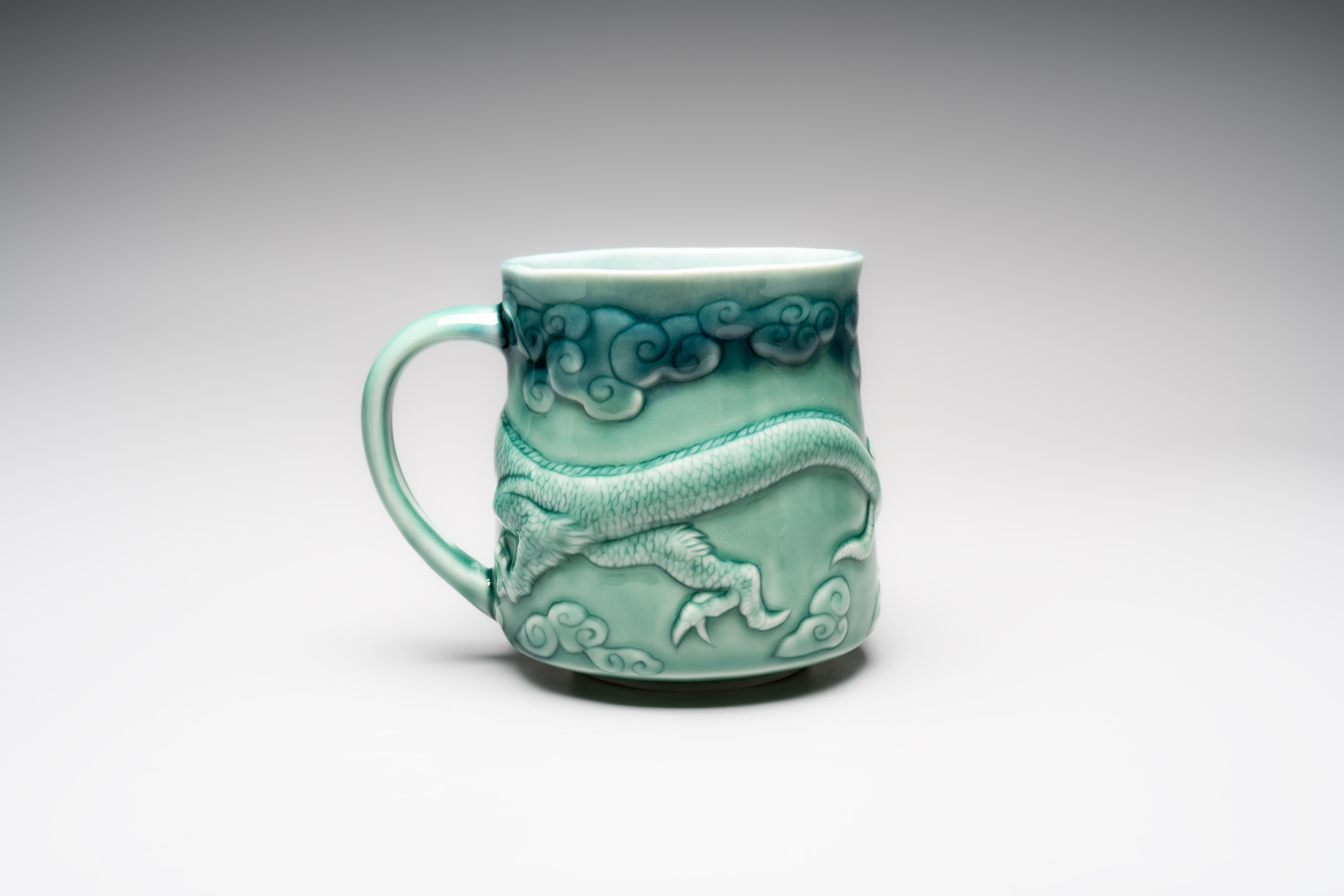 Кружка ручной работы «Дракон», зеленая, фарфор, 430 мл