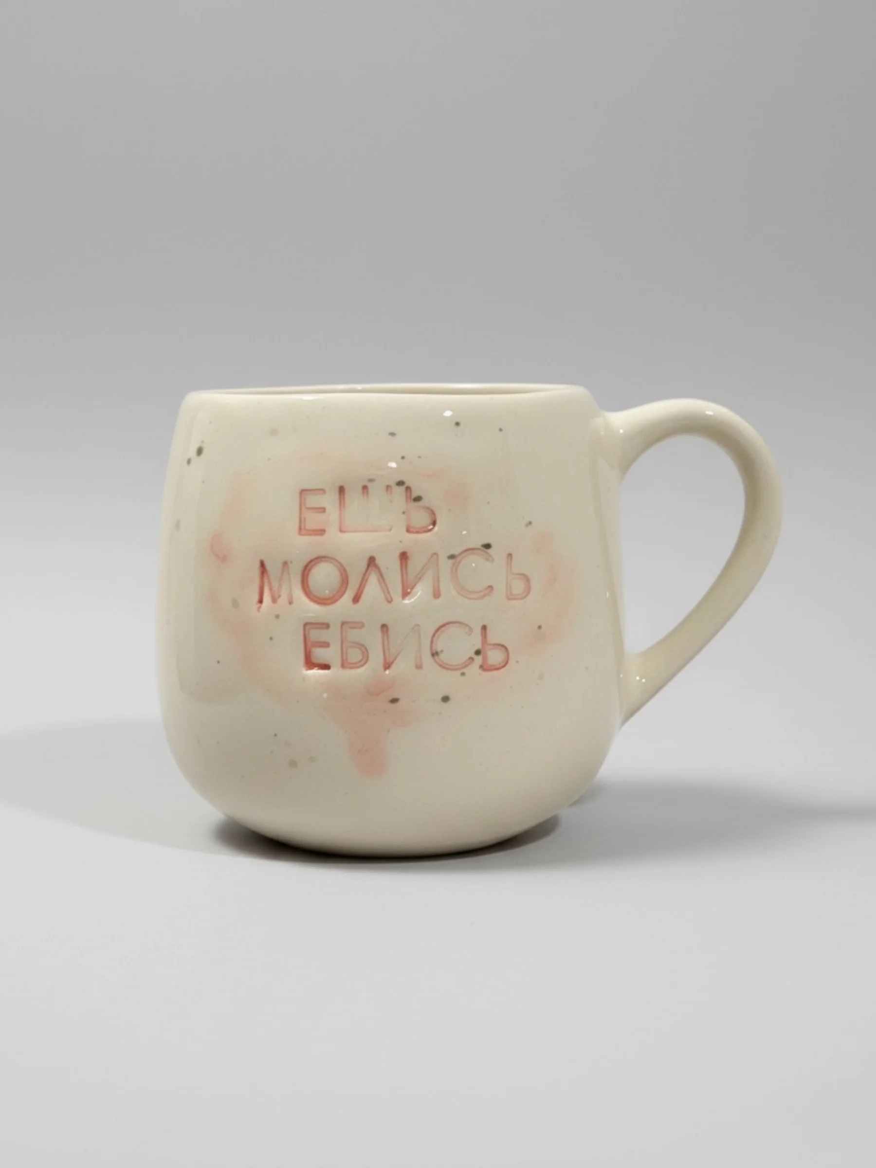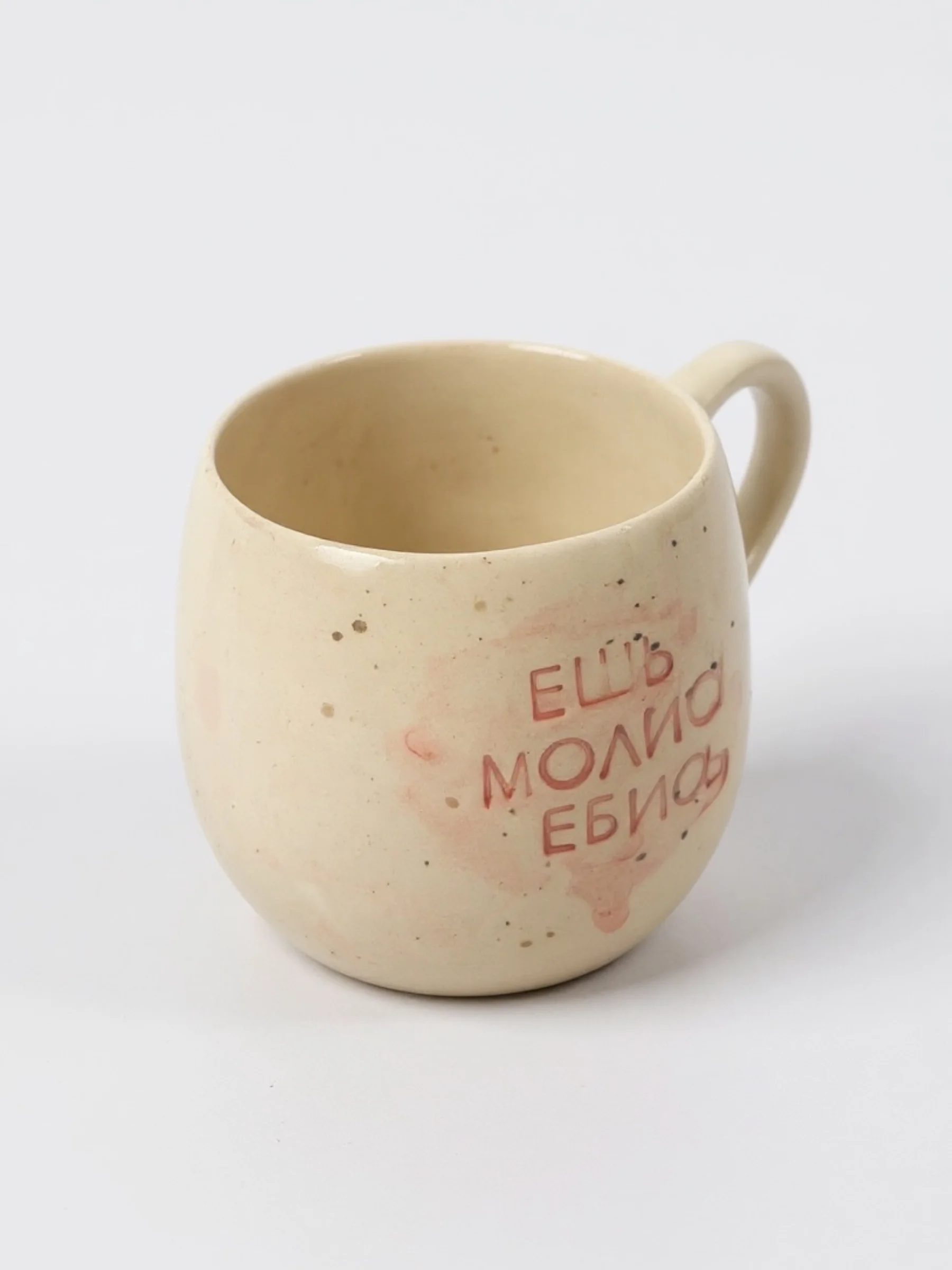 Кружка ручной работы Катя Вебер «Ешь молись **ись», белая, полуфарфор, 250 мл