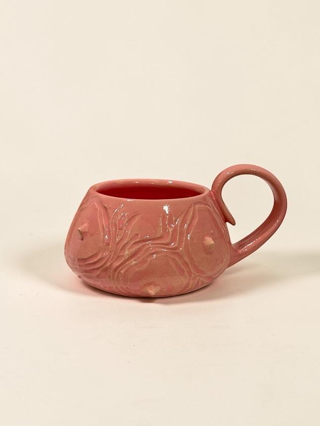 Кружка ручной работы гладкая с шипами, розовая, керамика, 250 мл