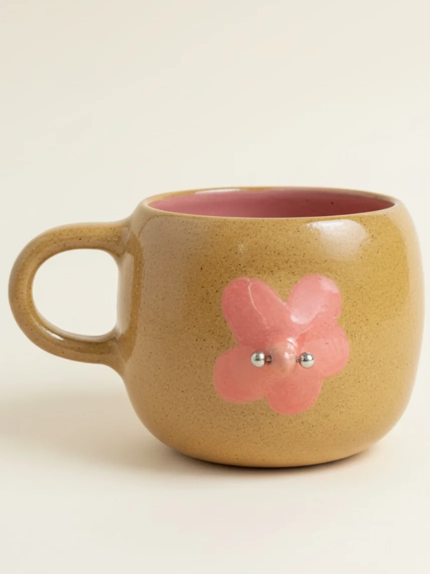 Кружка ручной работы Барыня «Грудь с цветочком», розовая, 380 мл, керамика