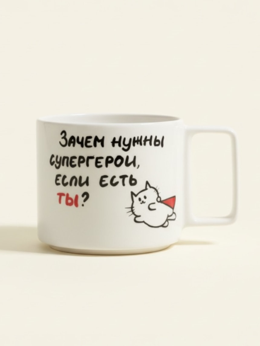 Кружка ручной работы РУКИ В ГЛИНЕ «Зачем нужны супергерои», белая, керамика, 450 мл