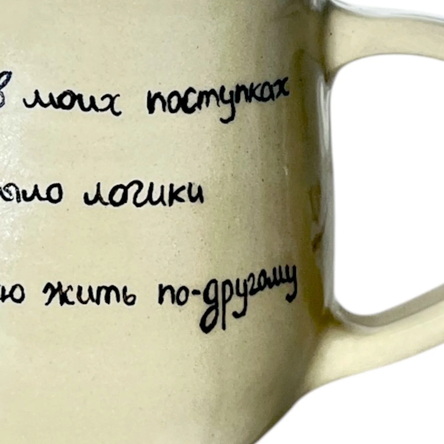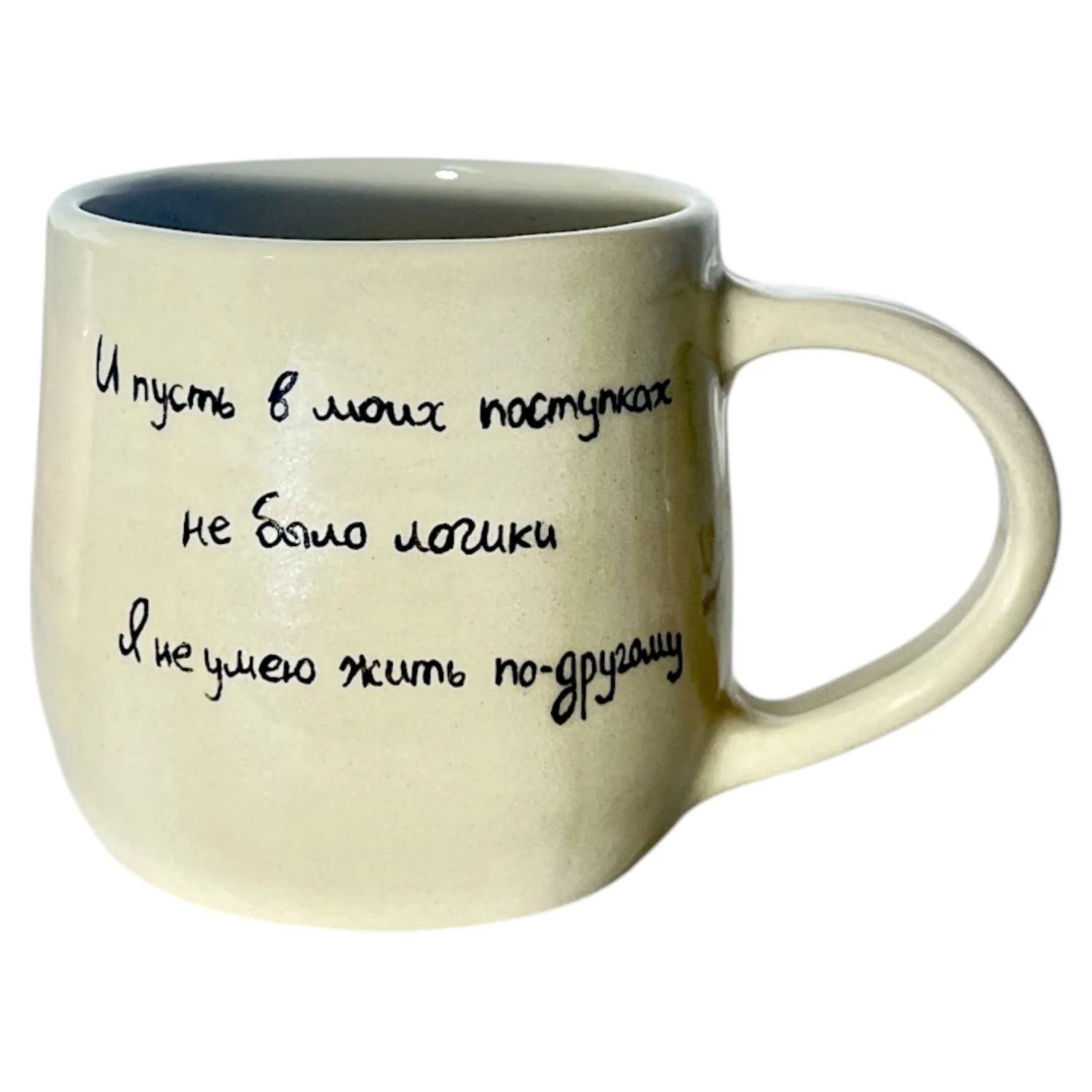 Кружка ручной работы «И пусть в моих поступках не было логики» от бренда Sova.Ceramics.