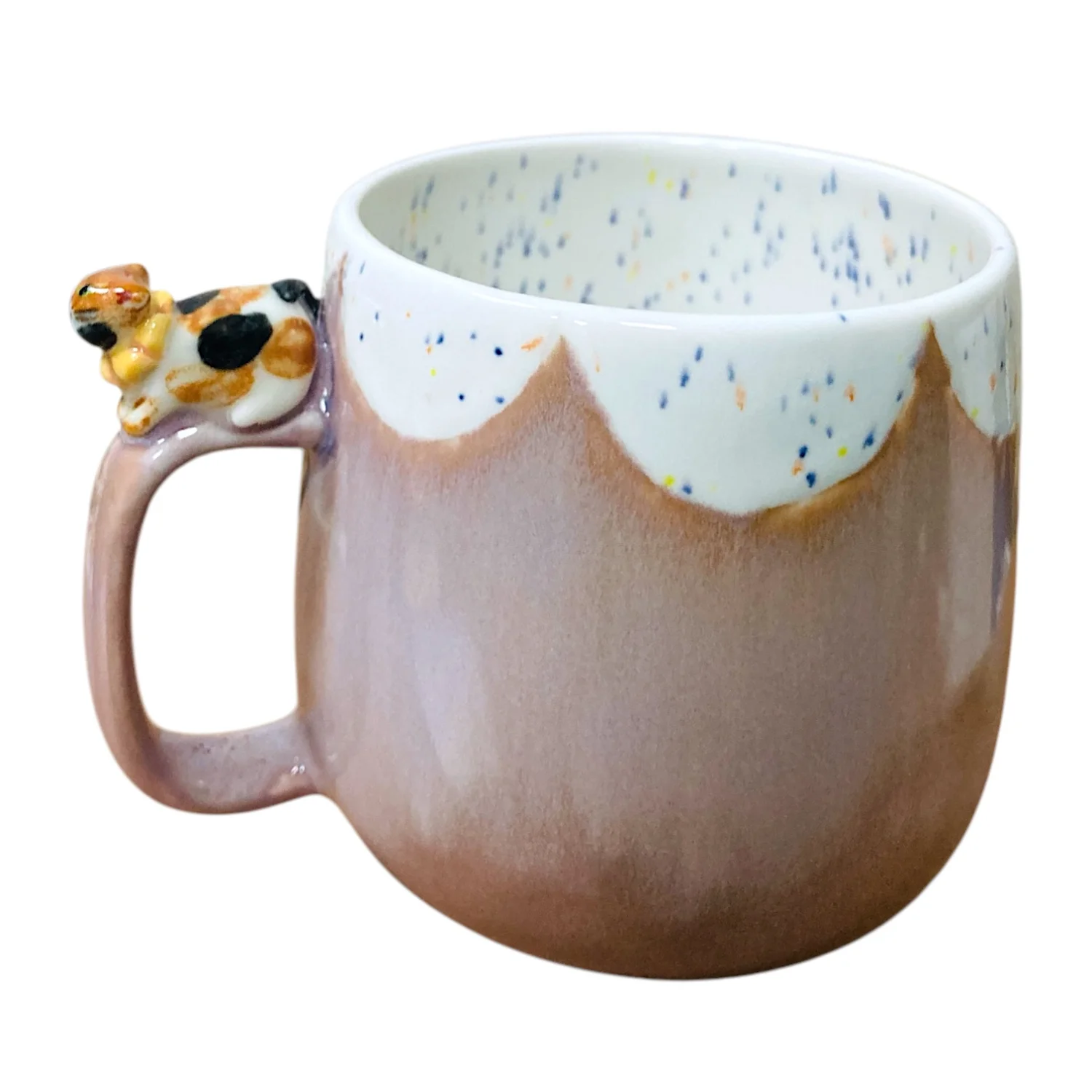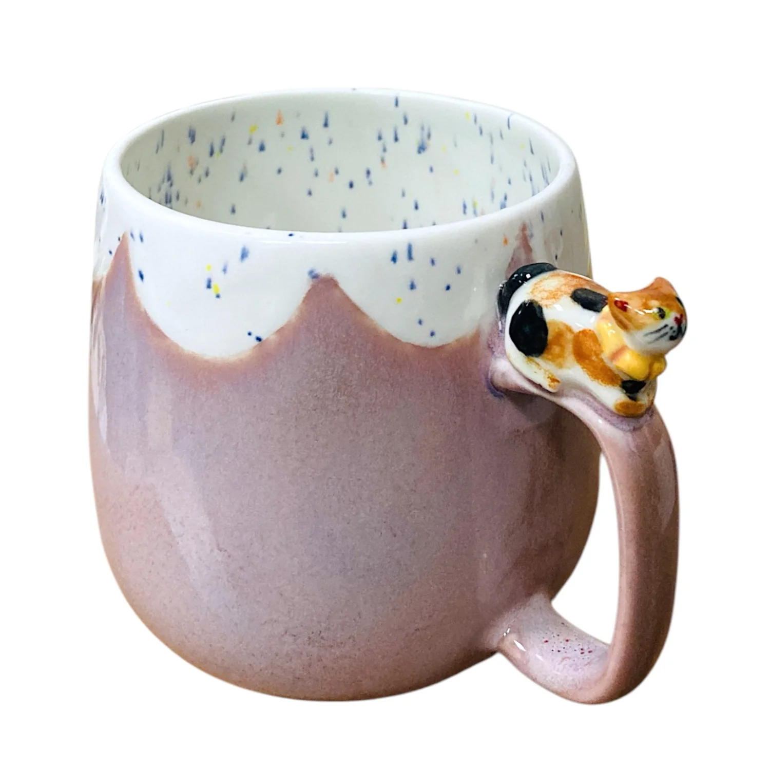 Кружка ручной работы Маковка капля с фигуркой на ручке «Котик», сиреневая, 350 мл