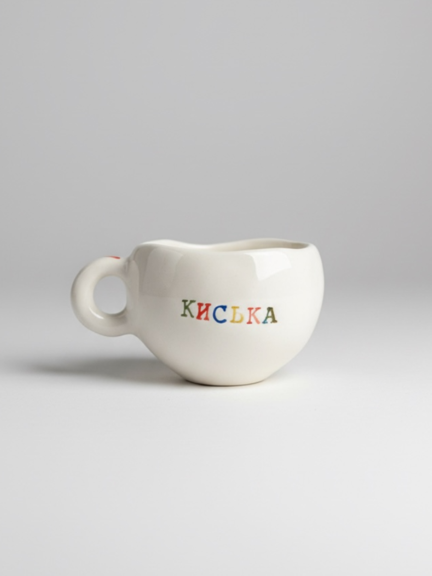 Керамическая кружка ручной работы с надписью «Киська». Производитель - петербургская керамистка Аня Мурмыло (Keramurrr).