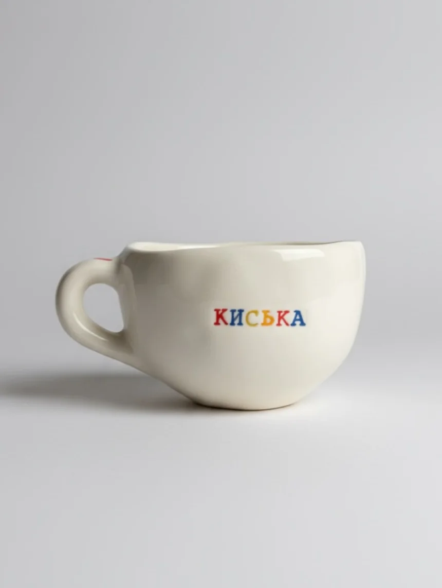 Керамическая кружка ручной работы с надписью «Киська». Производитель - петербургская керамистка Аня Мурмыло (Keramurrr).