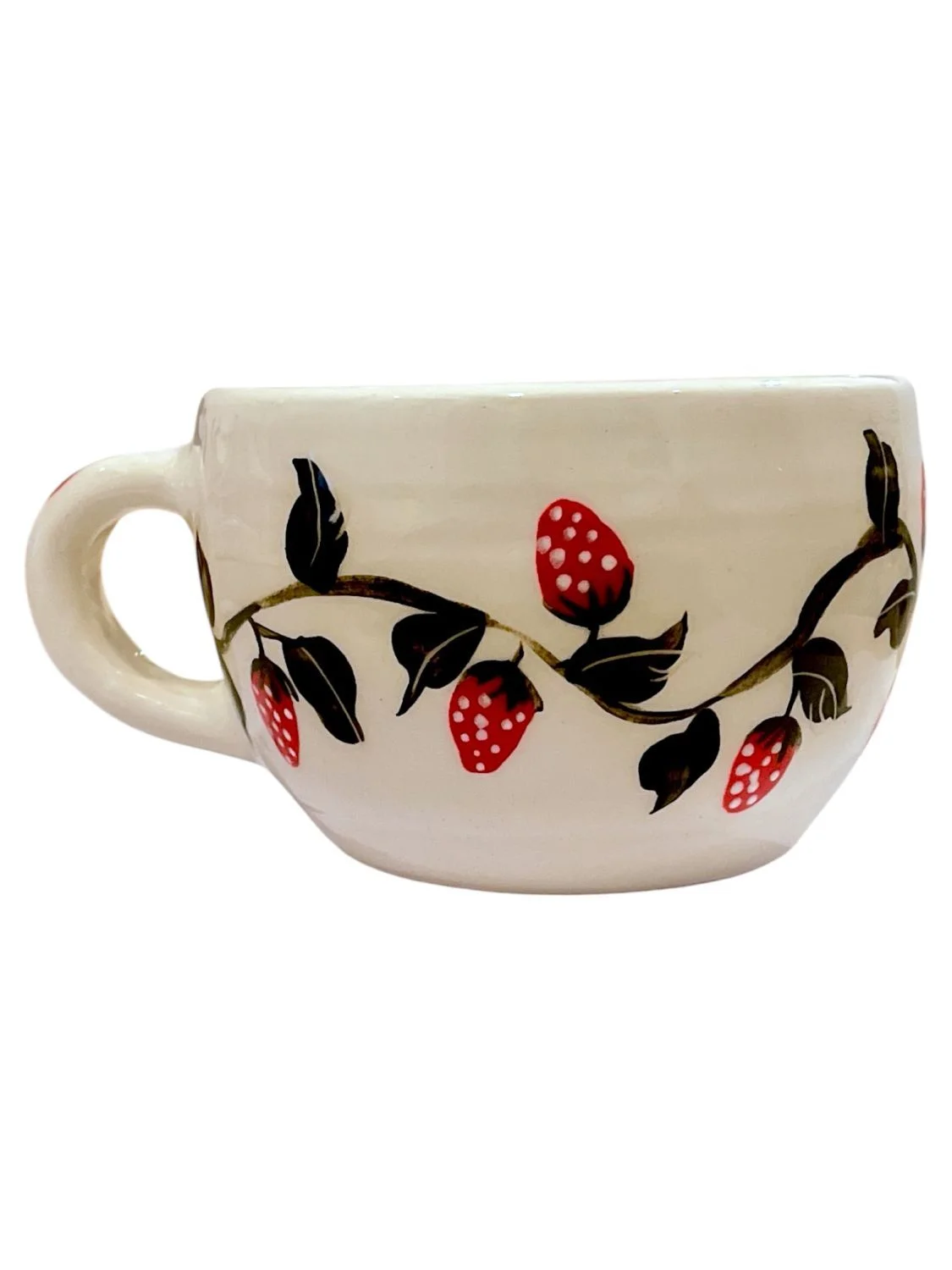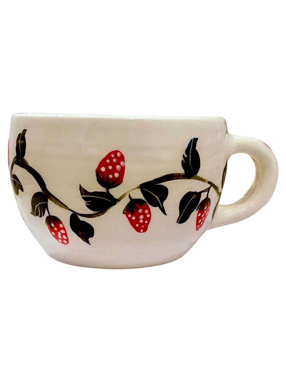 Яркие клубнички превращают каждое чаепитие в мгновение радости и уюта. Эта кружка — не просто посуда, это маленькое произведение искусства, которое наполняет день теплом, красотой и вдохновением к жизни.
