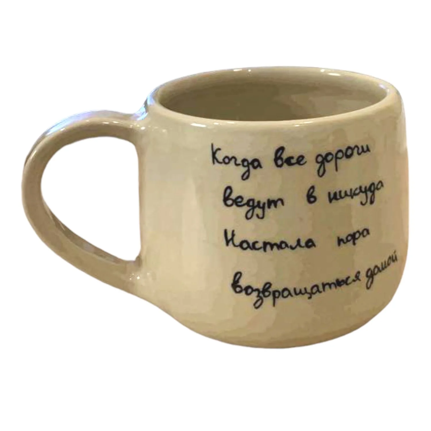 Кружка ручной работы «Когда все дороги...» от бренда Sova.Ceramics.