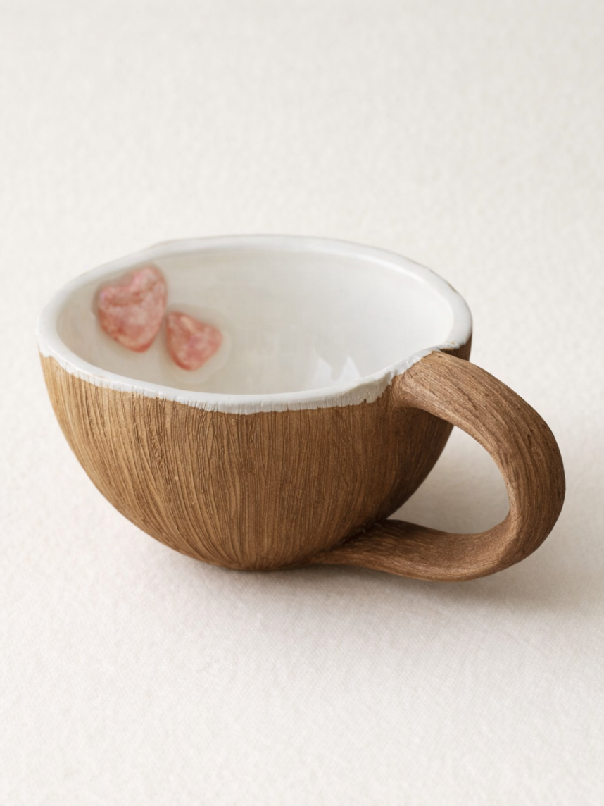 Кружка ручной работы «Кокос» с сердечками внутри, коричневая, керамика, 150 мл