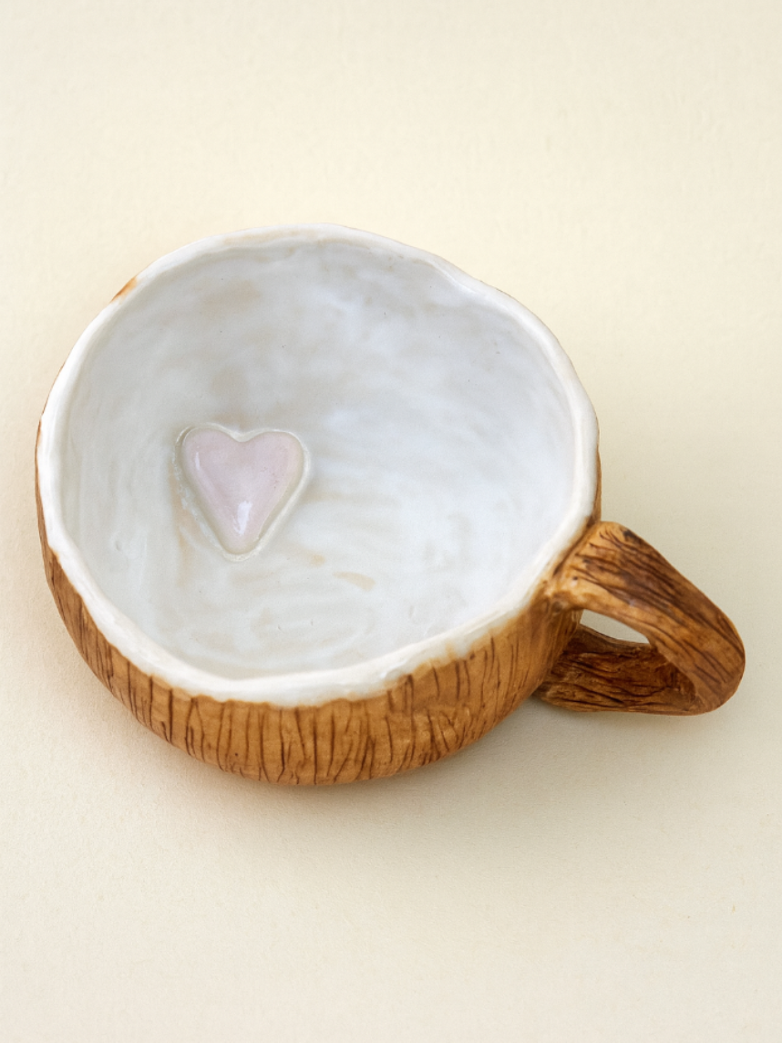 Кружка ручной работы «Кокос» с сердечком внутри, коричневая, керамика, 360 мл