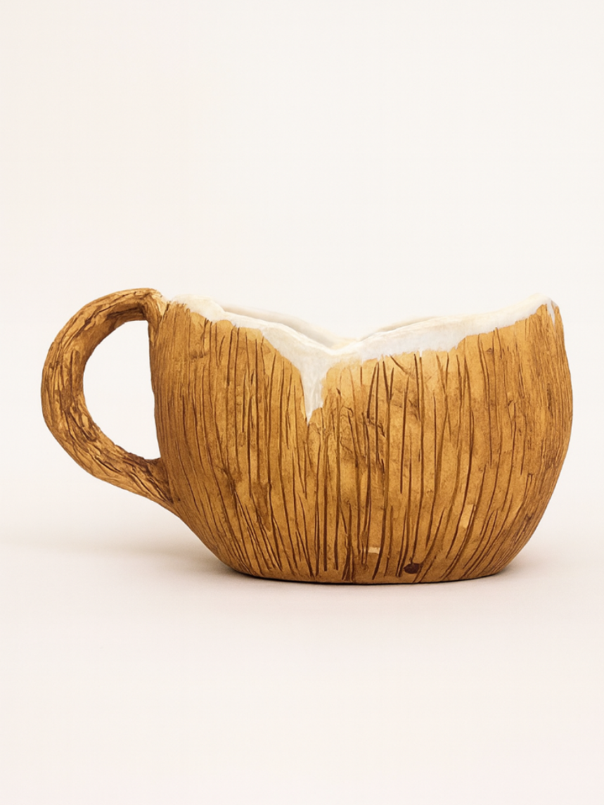 Кружка в виде Кокоса от петербургской мастерской Katyaweber_ceramics - оригинальный подарок для любителя тропических фруктов или для ценителя необычной домашней утвари.
