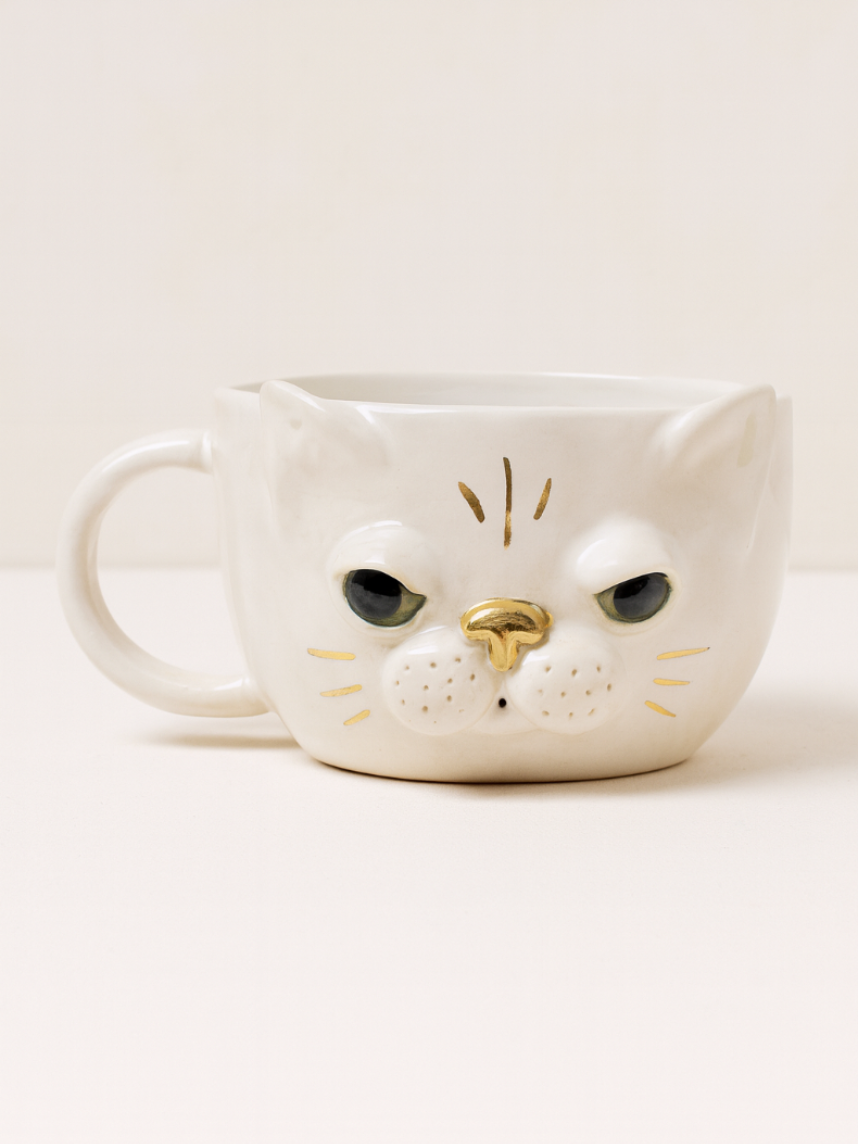 Кружка ручной работы «Кот», белая, керамика, 300 мл