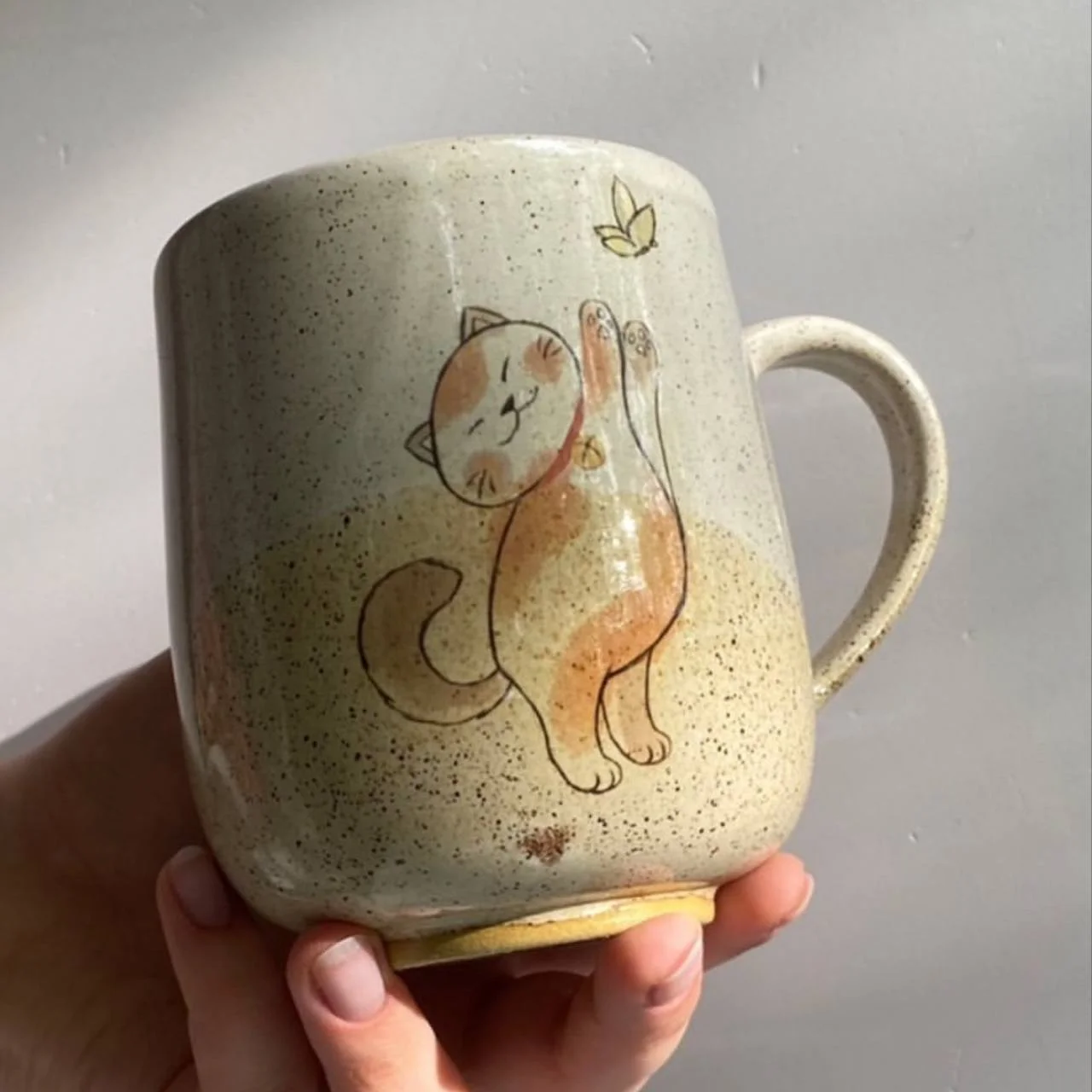 Кружка ручной работы Керемет «Котик с бабочкой», керамика, 400 мл