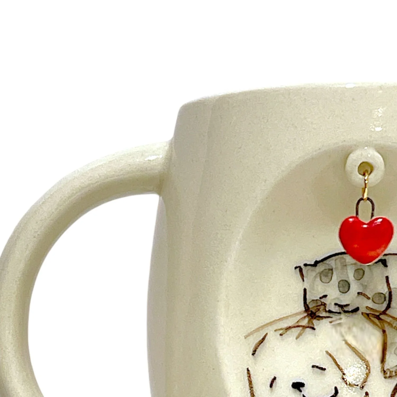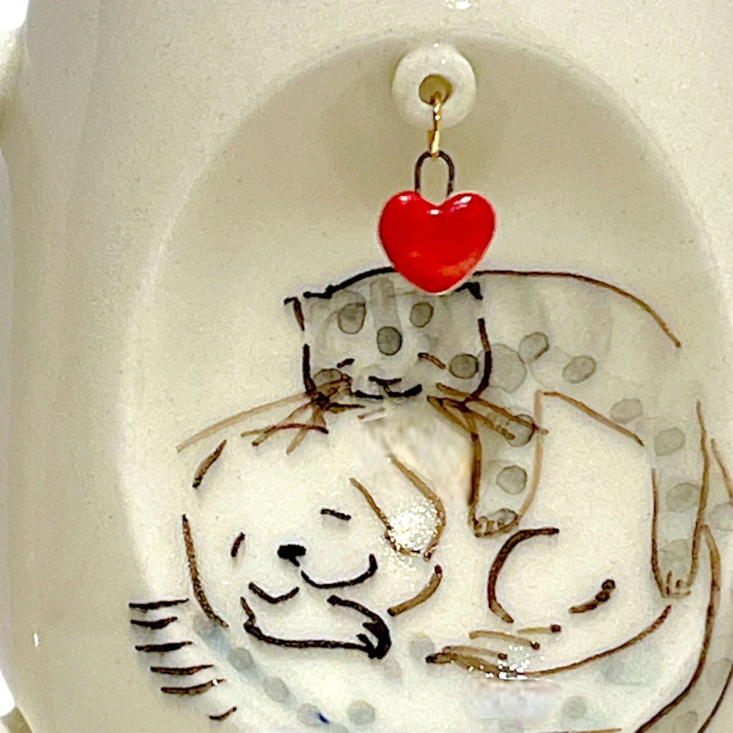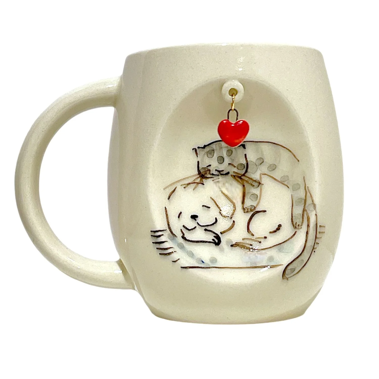 Кружка ручной работы НАДО ЖЕ Котик с пёсиком с подвеской сердечком, керамика, 300 мл