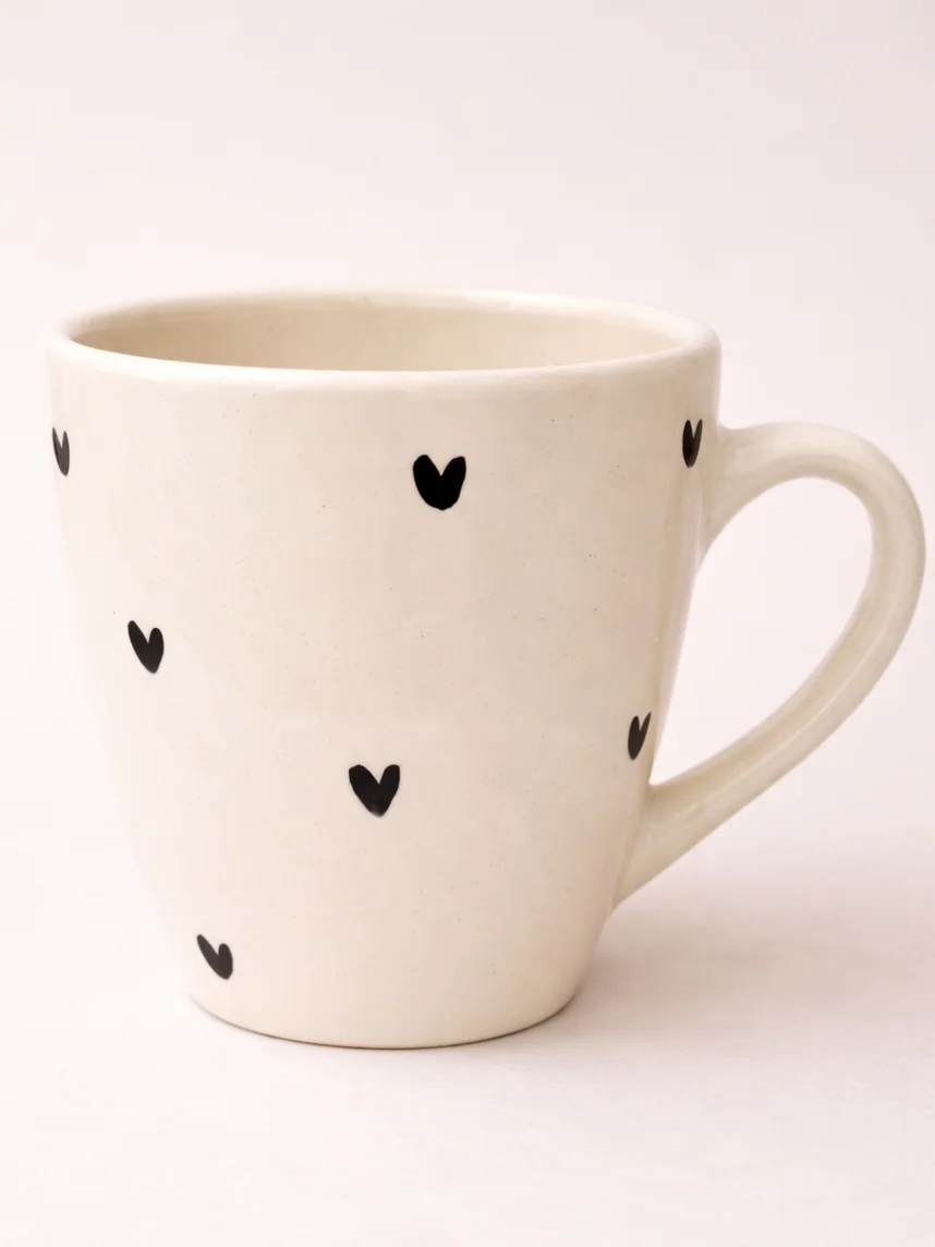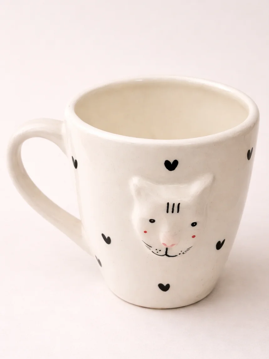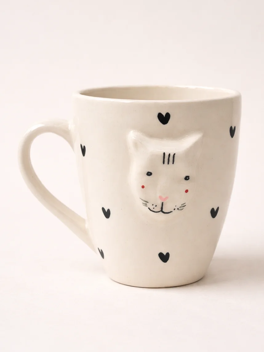 Кружка ручной работы Мария Гордеева Котик с сердечками, белая, керамика, 350 мл