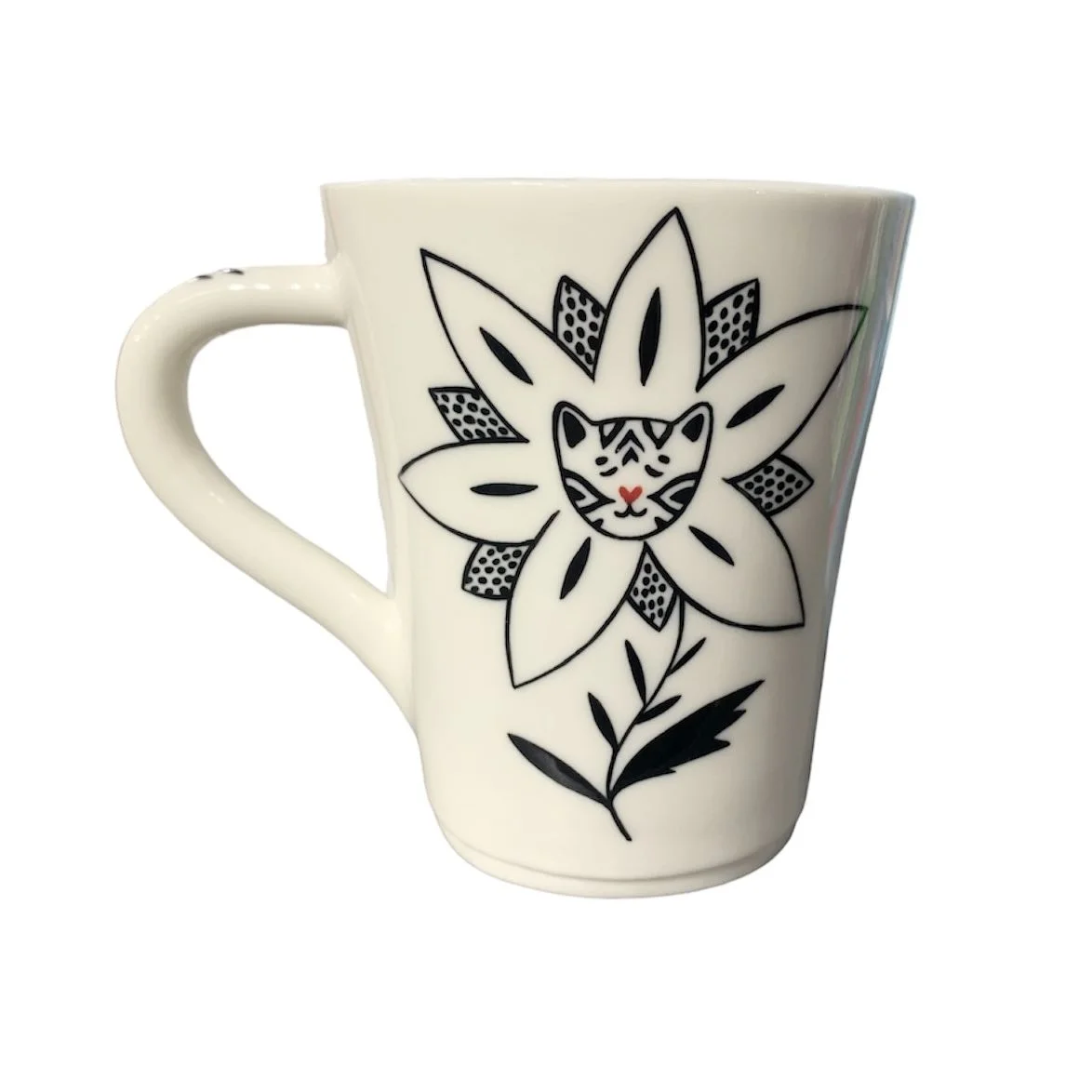 Кружка керамическая «Котик в цветочке», ручной работы. Производитель - московский бренд «Privet Store».