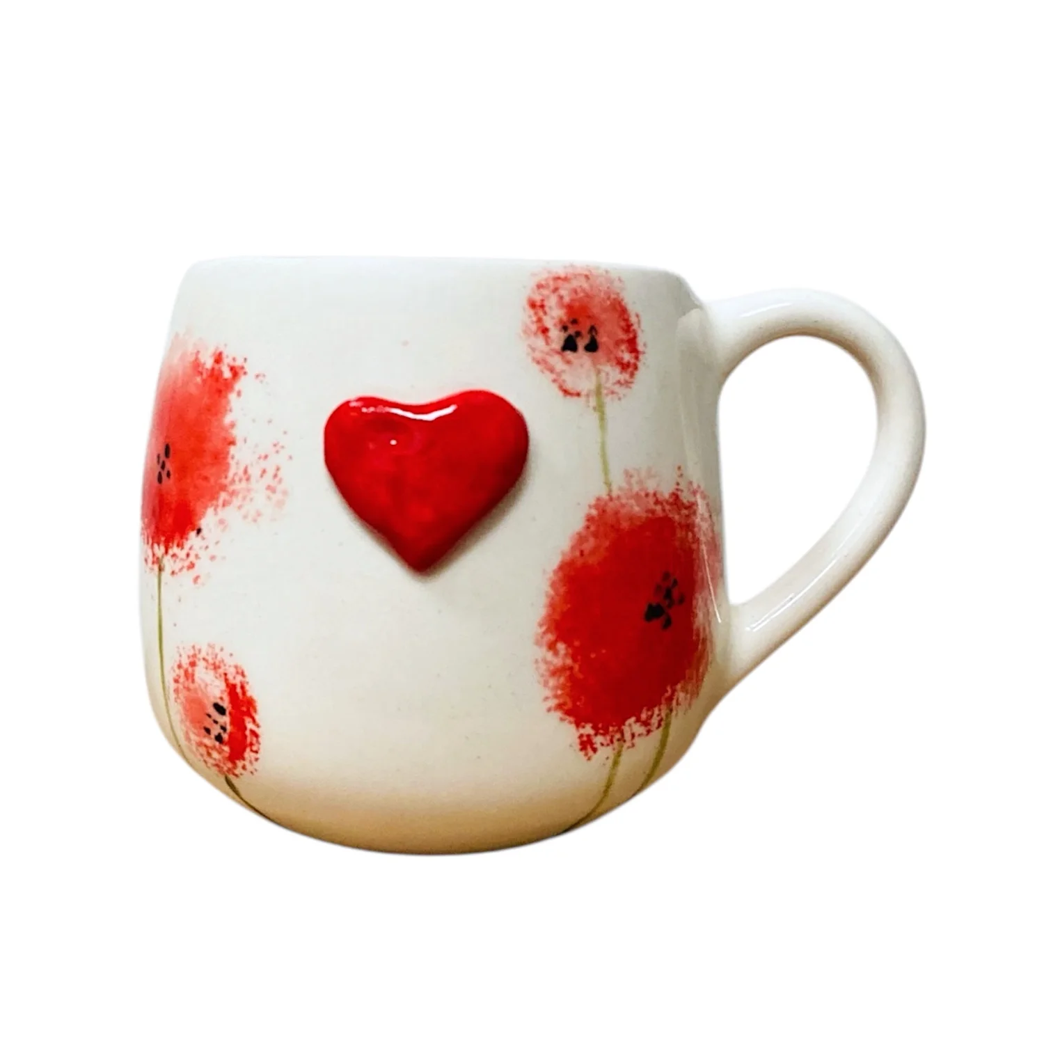 Кружка ручной работы Катя Вебер «Красные одуванчики», белая, керамика, 200 мл