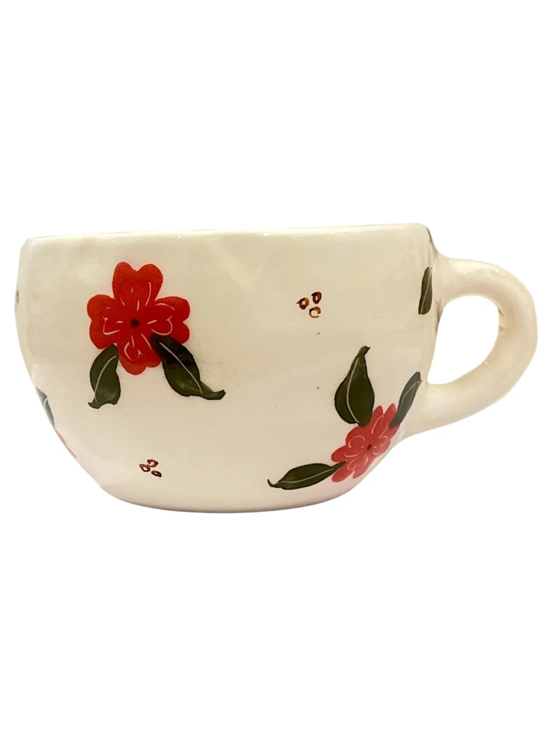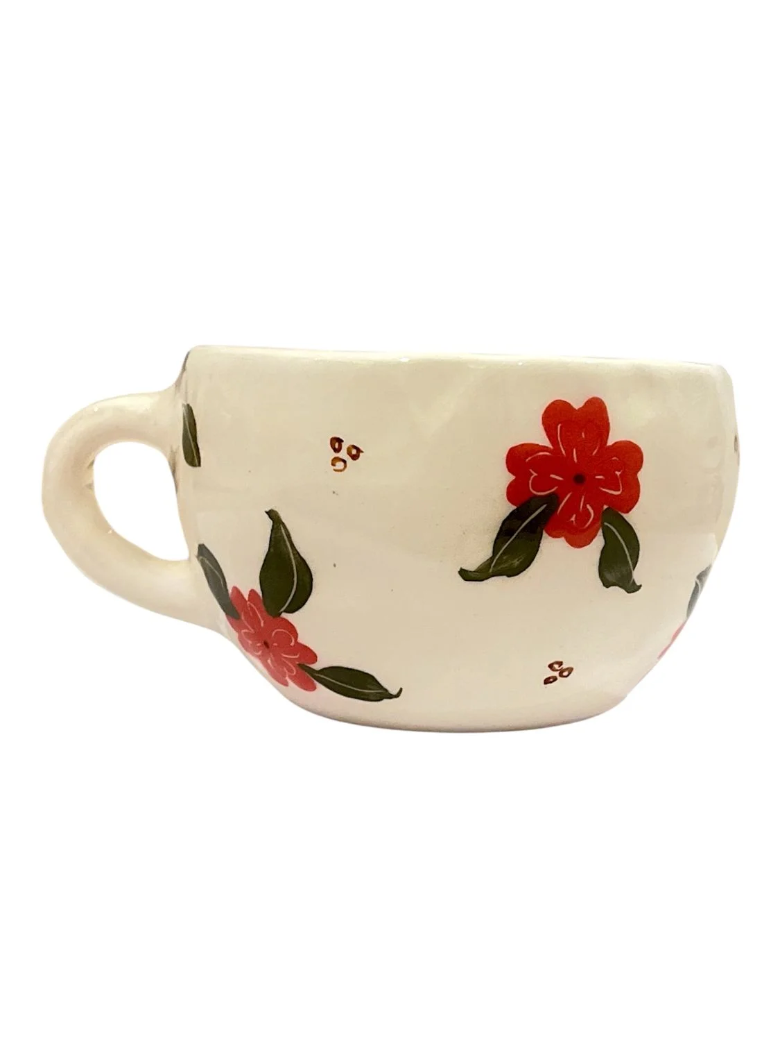 Яркие красные цветочки превращают каждое чаепитие в мгновение радости и уюта. Эта кружка — не просто посуда, это маленькое произведение искусства, которое наполняет день теплом, красотой и вдохновением к жизни.