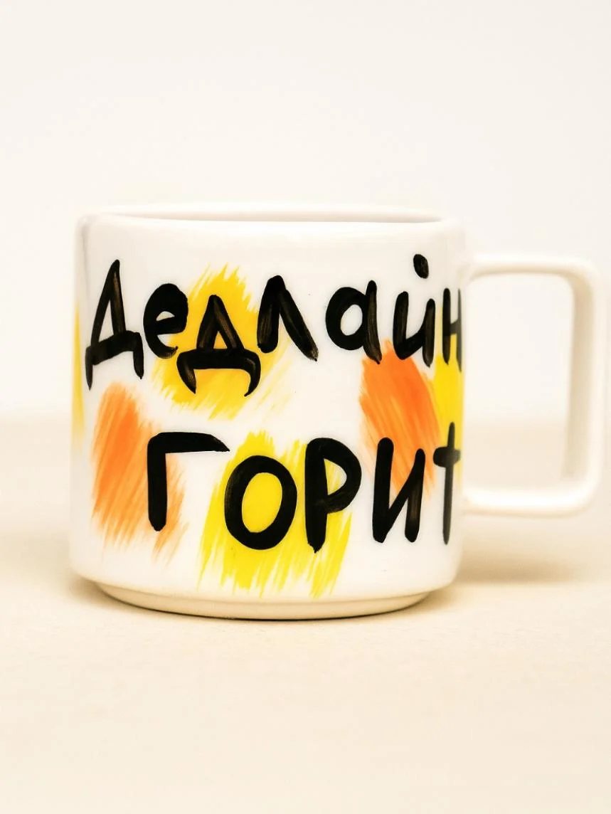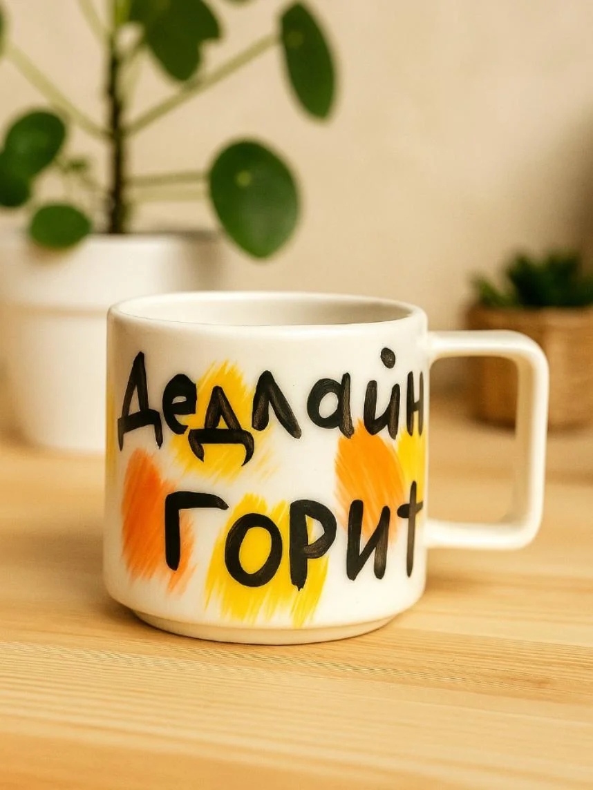 Кружка ручной работы РУКИ В ГЛИНЕ «Дедлайн горит», жёлтая, керамика, 350 мл