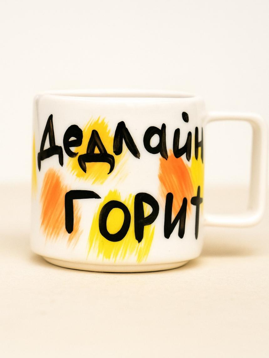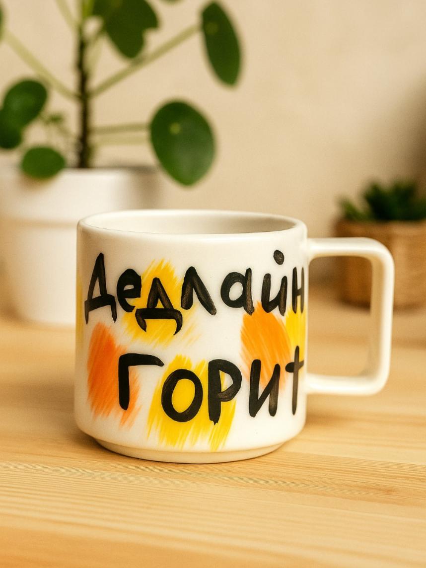Кружка ручной работы «Дедлайн горит», жёлтая, керамика, 350 мл