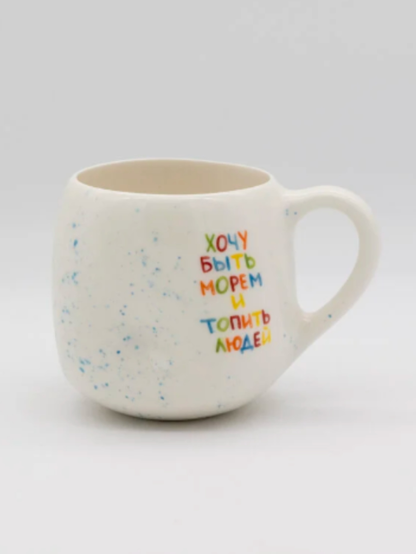 Кружка ручной работы круглая «Хочу быть морем и топить людей», керамика, 400 мл