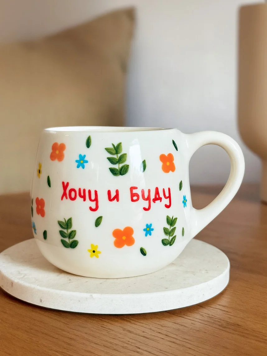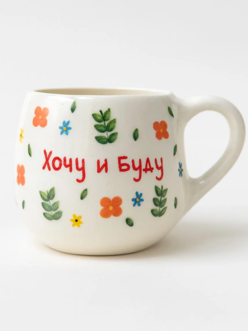 Кружка ручной работы РУКИ В ГЛИНЕ «Хочу и буду», керамика, 400 мл, круглая