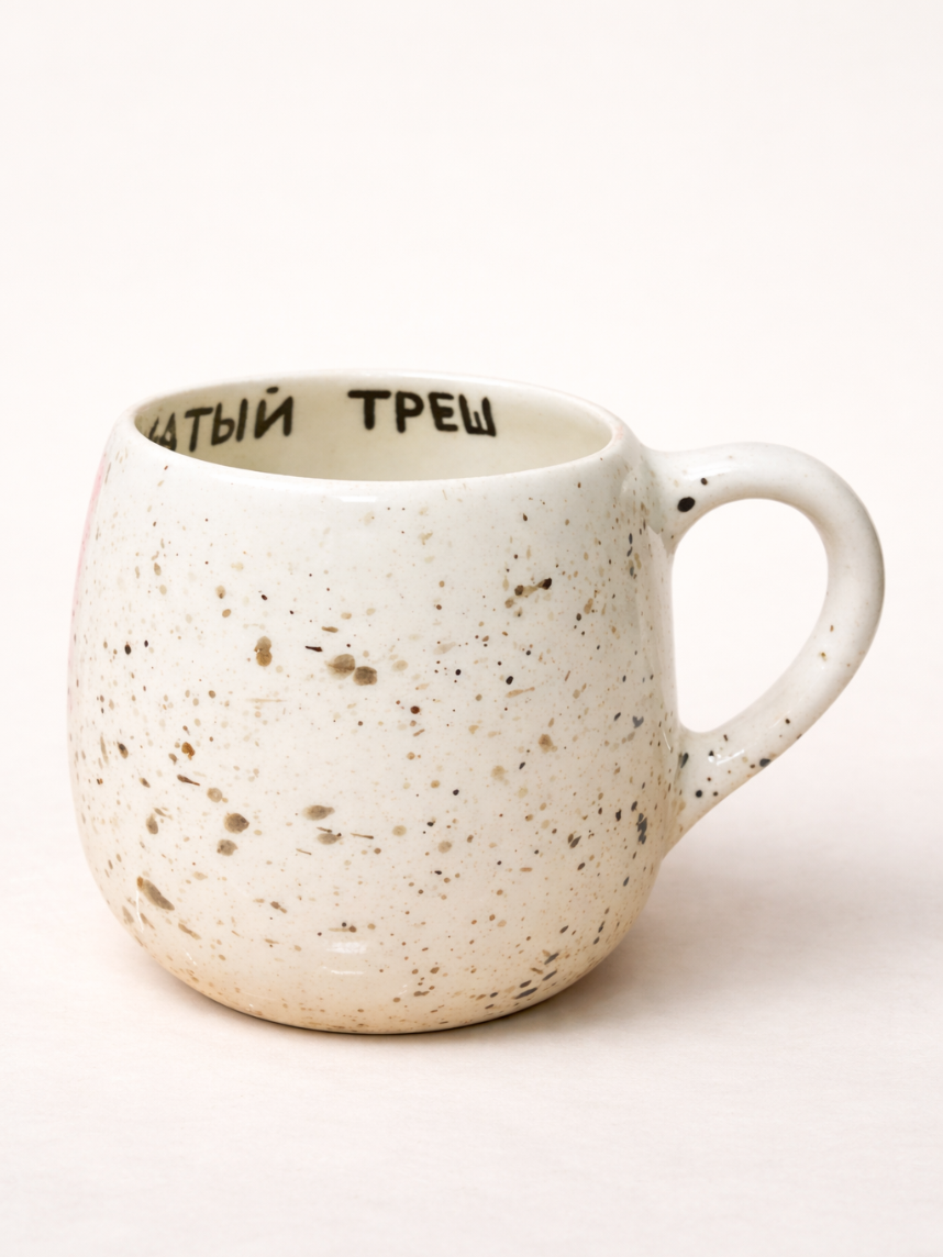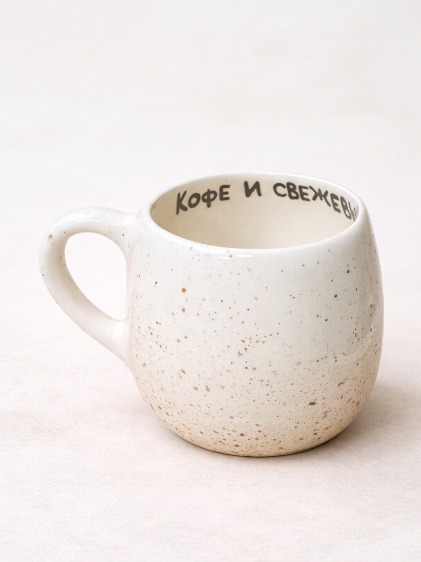 Кружка ручной работы круглая «Кофе и свежевыжатый треш», керамика, 400 мл