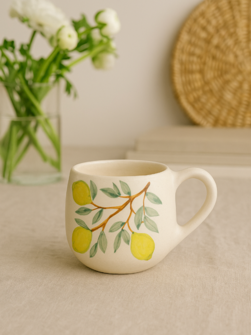 Кружка ручной работы круглая «Лимоны», керамика 400 мл