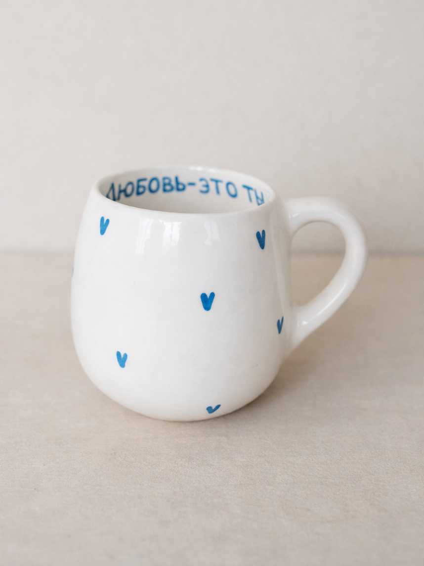 Кружка ручной работы круглая «Любовь - это ты», голубая, керамика, 250 мл